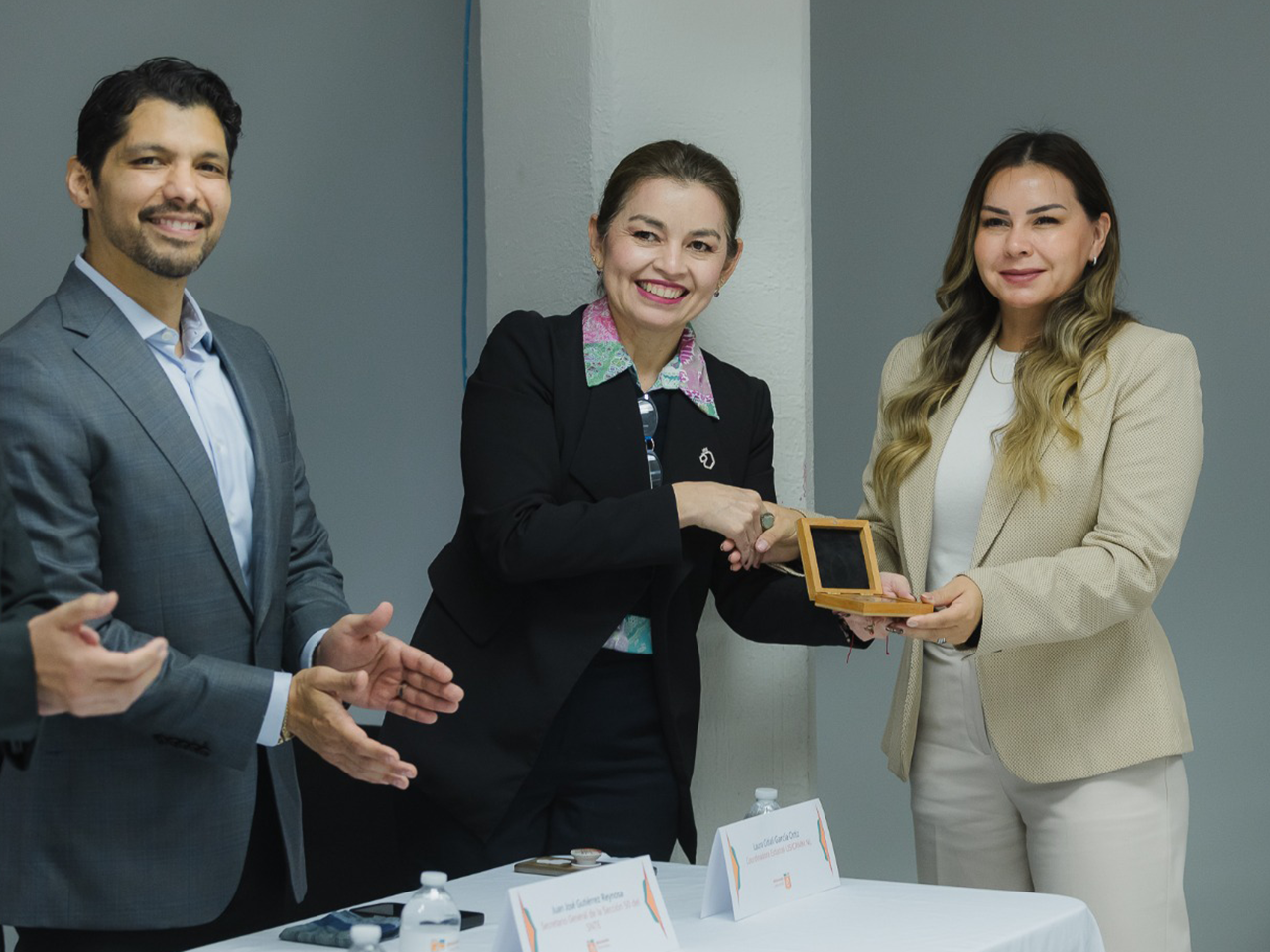 Durante la ceremonia estuvieron presentes el Secretario General de la Sección 21 del SNTE, José Francisco Martínez Calderón; el Secretario General de la Sección 50 del SNTE, Juan José Gutiérrez Reynosa, así como autoridades de la Secretaría de Educación.