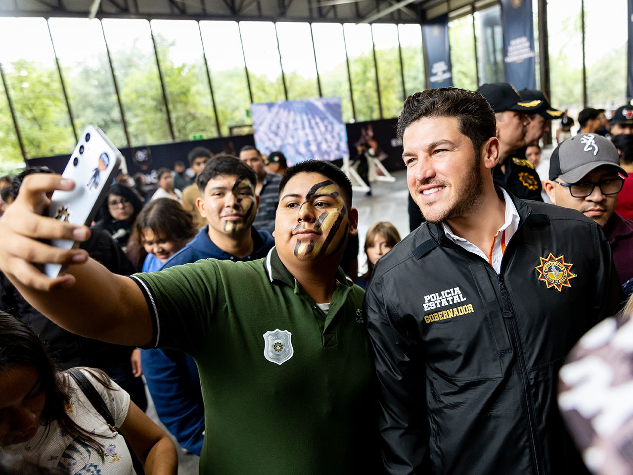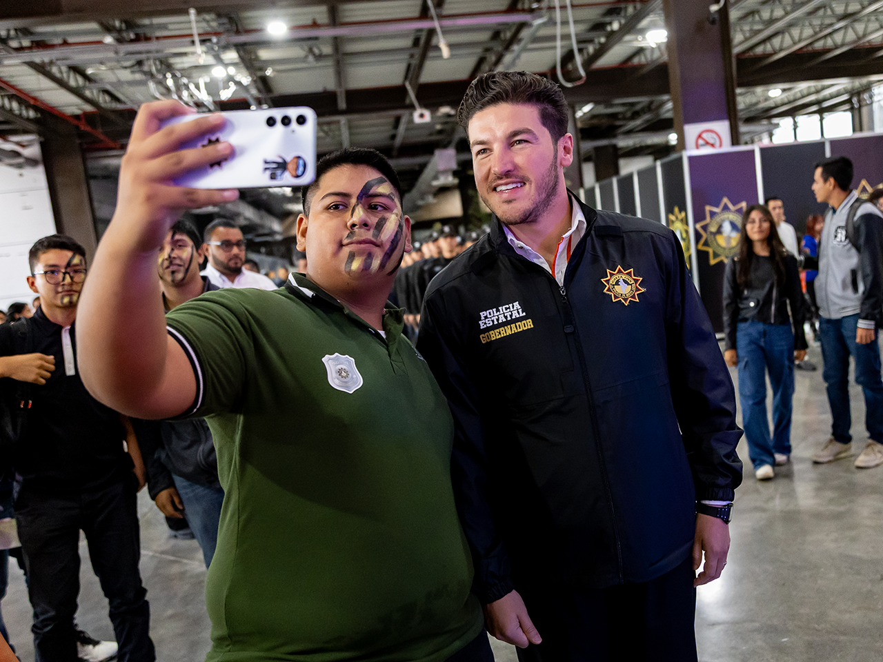 “Muy contentos de una nueva Expo Fuerza Civil este cuarto año tenemos mucho que ofrecer a la gente de Nuevo León, vengan aquí a Nave Lewis, vengan a conocer la mejor policía de México, la Nueva Fuerza Civil que acaba de salir como la policía más confiable del país con unas aprobaciones por arriba de 75 por ciento por la gente de Nuevo León”, destacó el Gobernador Samuel García.