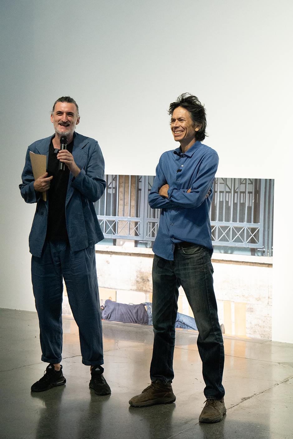 “Es la idea del estudio del artista, de entender el exterior como un gran estudio”, explicó durante el recorrido, “por ejemplo, podemos ver aquí que es el Río Bravo, la frontera entre México y Estados Unidos y justamente se llama ‘Siendo nada entre México y Estados Unidos.