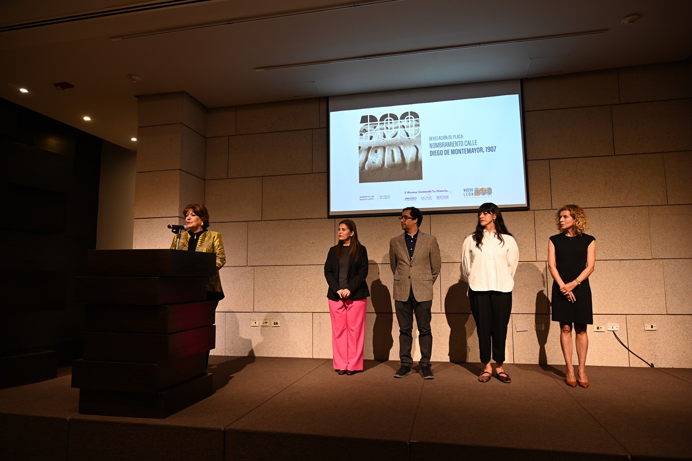 Monterrey, Nuevo León.- El marco de la Conmemoración de los 200 años de la creación del Estado Libre y Soberano de Nuevo León, se reintegró la placa histórica que data de 1907 y que da nombre a la calle Diego de Montemayor en la fachada el Museo del Noreste, en un importante acto de recuperación de la memoria urbana.