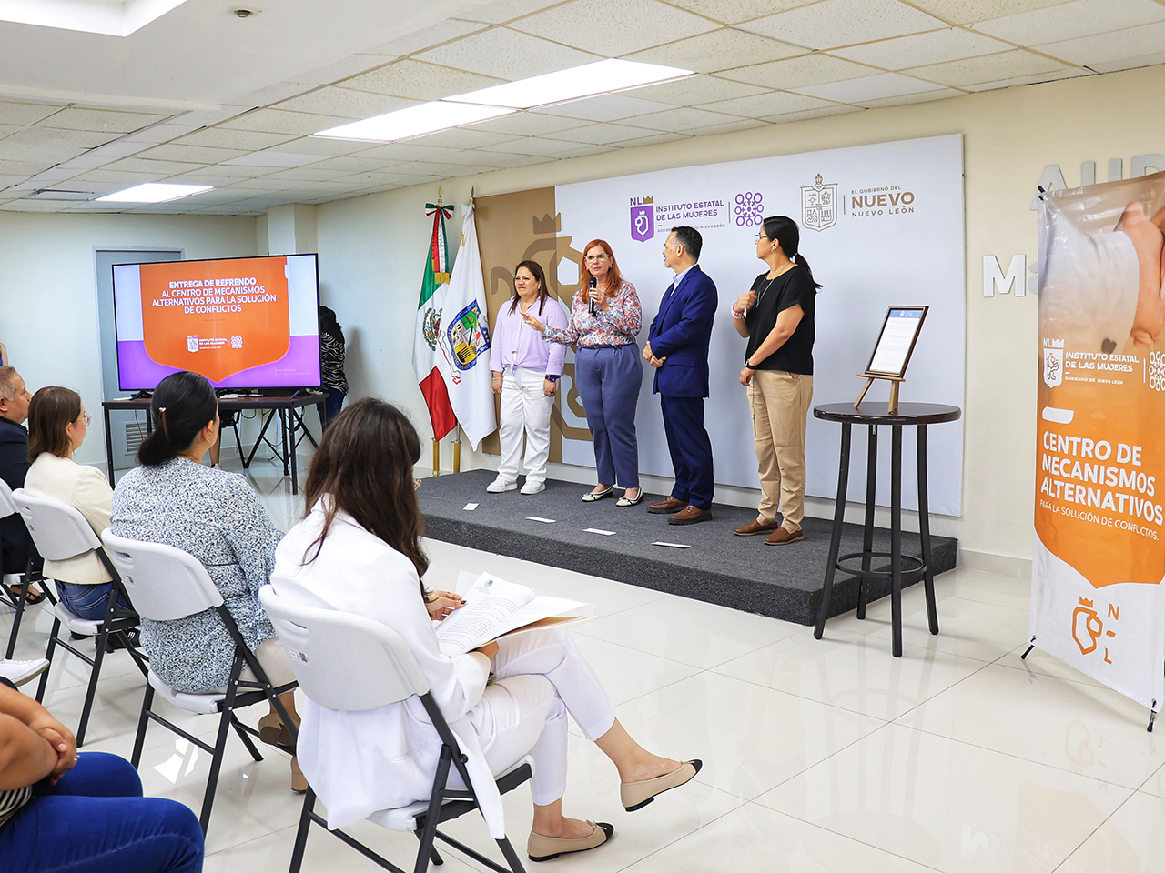 Monterrey, Nuevo León.- Comprometidos en continuar siendo una instancia que únicamente recibe solicitudes de mujeres para la resolución de conflictos a través de la mediación, este lunes fue refrendado por tres años más el Centro de Mecanismos Alternativos del Instituto Estatal de las Mujeres (IEM).
