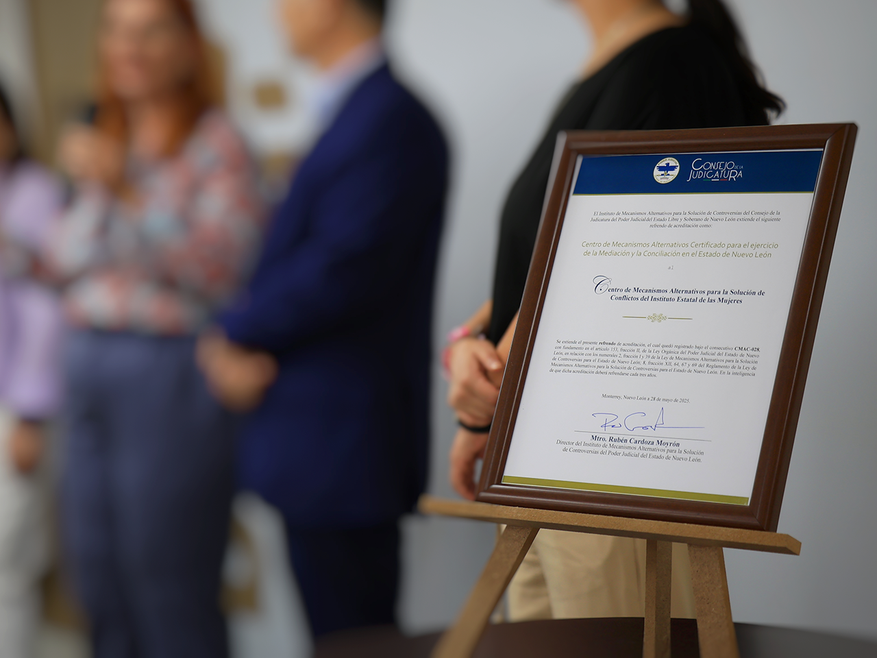 Con la entrega del documento oficial por parte de Rubén Cardoza Moyo, Director del Instituto de Mecanismos Alternativos para la Solución de Controversias del Poder Judicial del Estado de Nuevo León, en manos de Miriam Hinojosa Dieck, Presidenta Ejecutiva del IEM, se oficializó que el Instituto continuará brindando mediación en materia familiar, comunitaria, mercantil y civil.