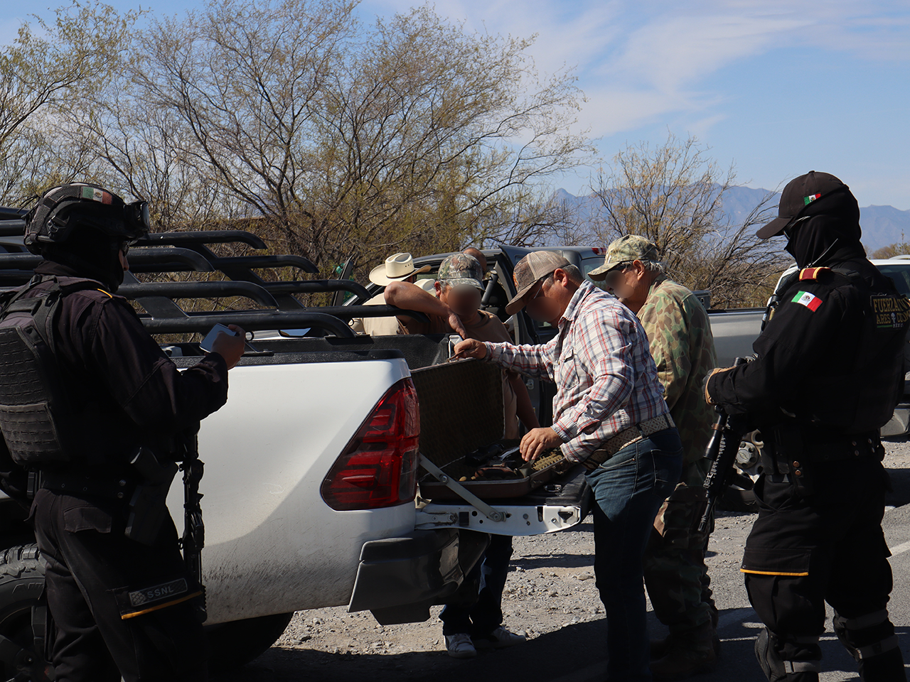 Monterrey, Nuevo León.- Como parte de las acciones permanentes para garantizar el aprovechamiento legal, responsable y sustentable de la vida silvestre, la Nueva División Ambiental, a través de la coordinación de Parques y Vida Silvestre en acompañamiento con Fuerza Civil y la Secretaría de Medio Ambiente del Estado, llevó a cabo un operativo de inspección y vigilancia en la carretera Monterrey–Colombia, a la altura del entronque a Candela en el municipio de Lampazos, con motivo del cierre de la temporada de caza.