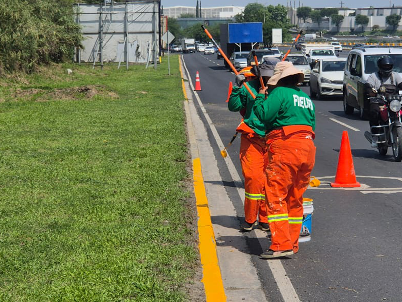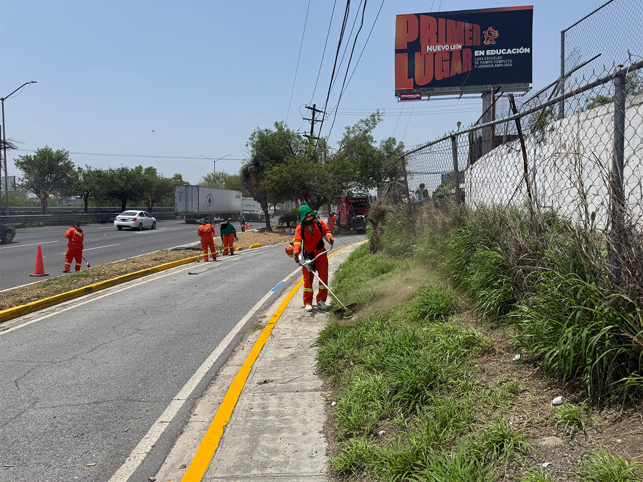Entre los puntos más relevantes destacan la Avenida Constitución, en el tramo de Av. Bonifacio Salinas a Av. Gonzalitos, donde se continuaron los recorridos de limpieza en carriles ordinarios y exprés, además del refuerzo en zonas críticas, desbroce y pintura amarilla en el cordón vial de la lateral derecha.