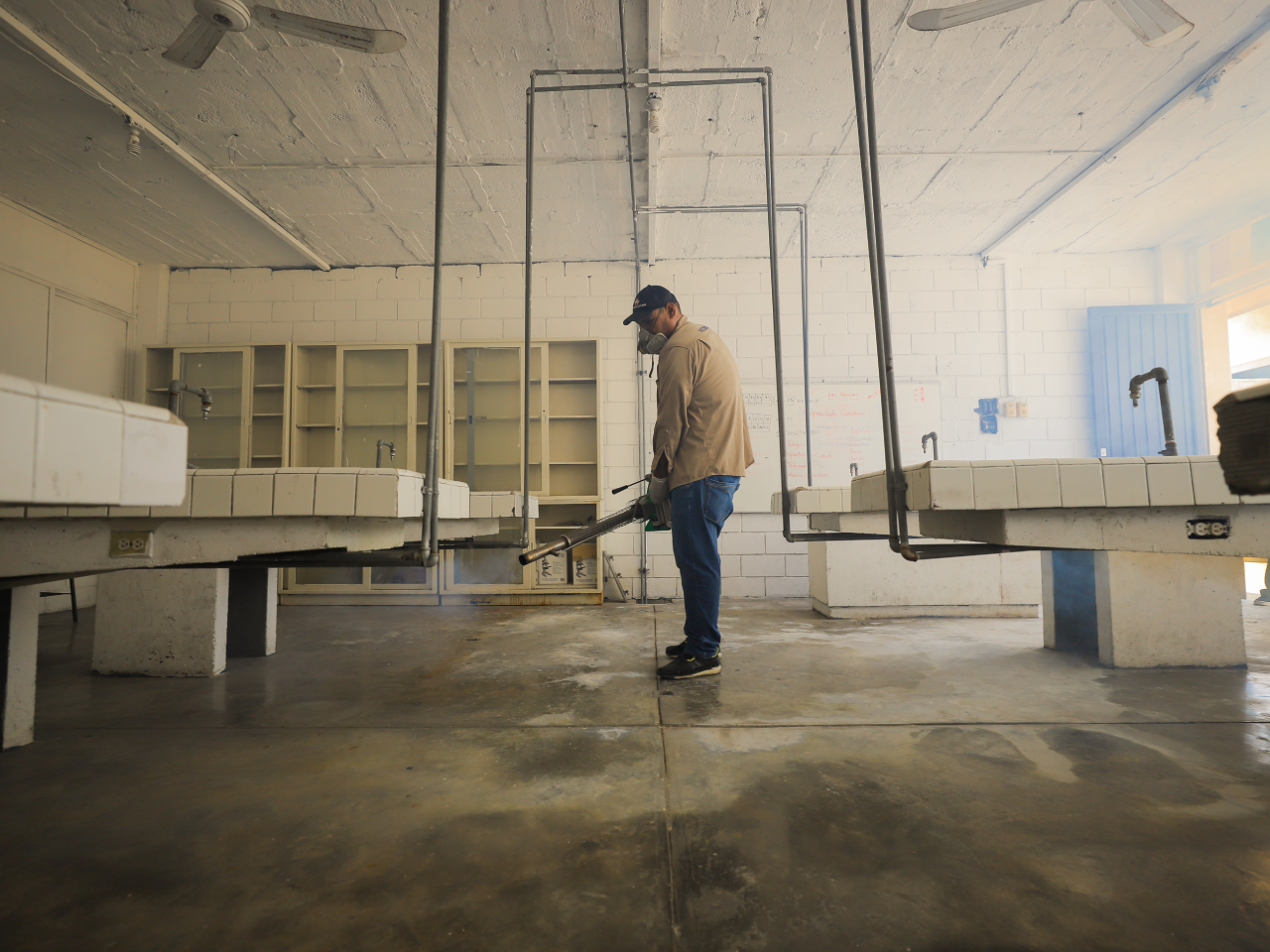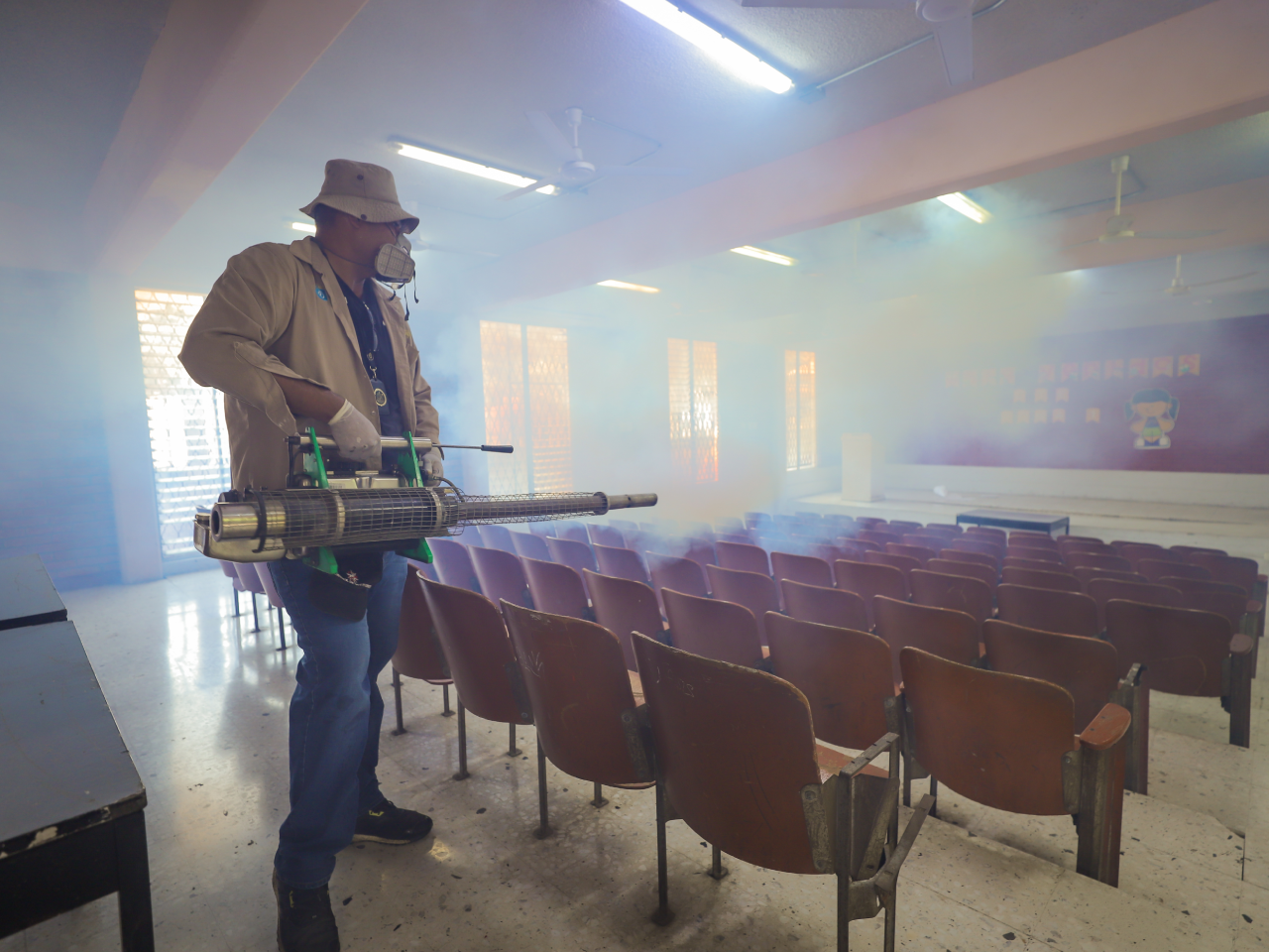 Monterrey, Nuevo León.- Ante el inicio del ciclo escolar, la Secretaría de Salud reforzó la fumigación contra el dengue y otros vectores en planteles educativos.
