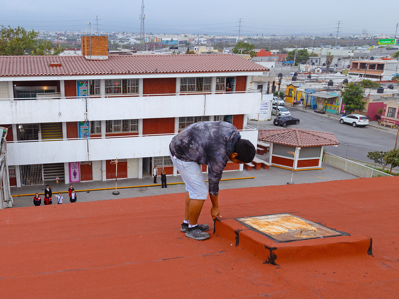 Las autoridades educativas informaron que el personal realiza trabajos que consiste en el retiro de impermeabilizante existente, reparación de losas, desconches, grietas y nivelación de techos, con el fin de garantizar aulas dignas y seguras.
