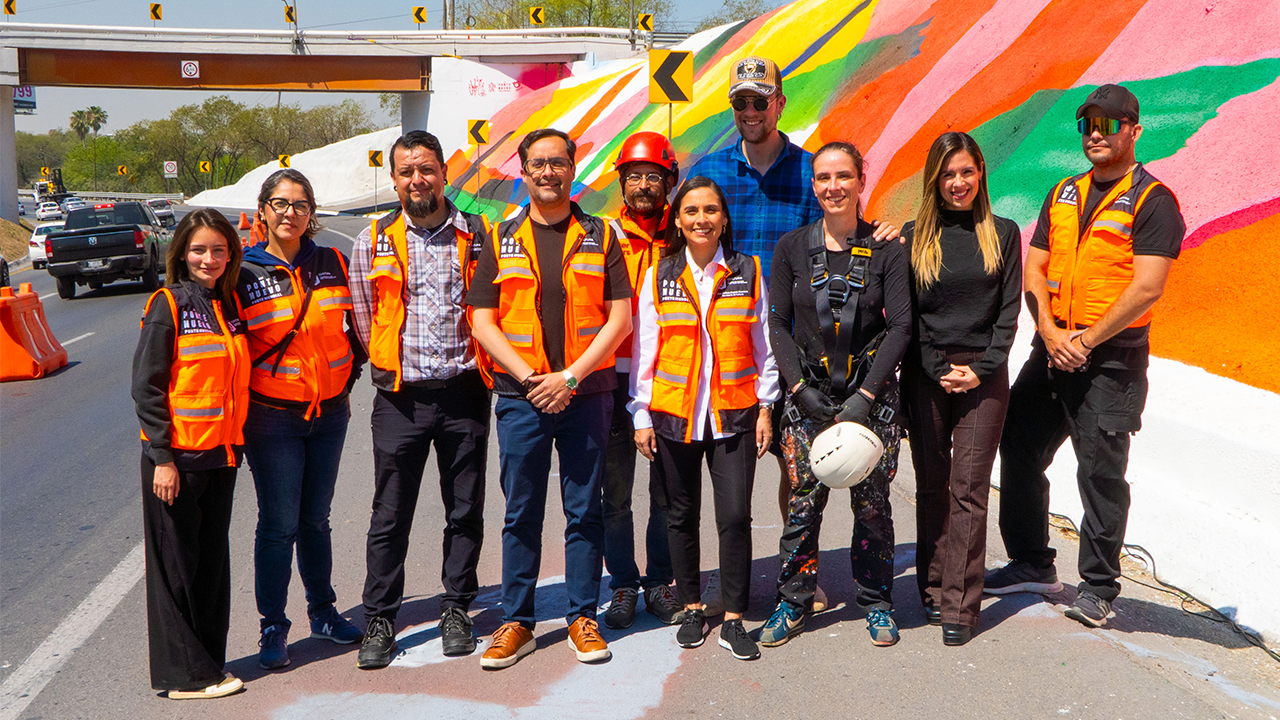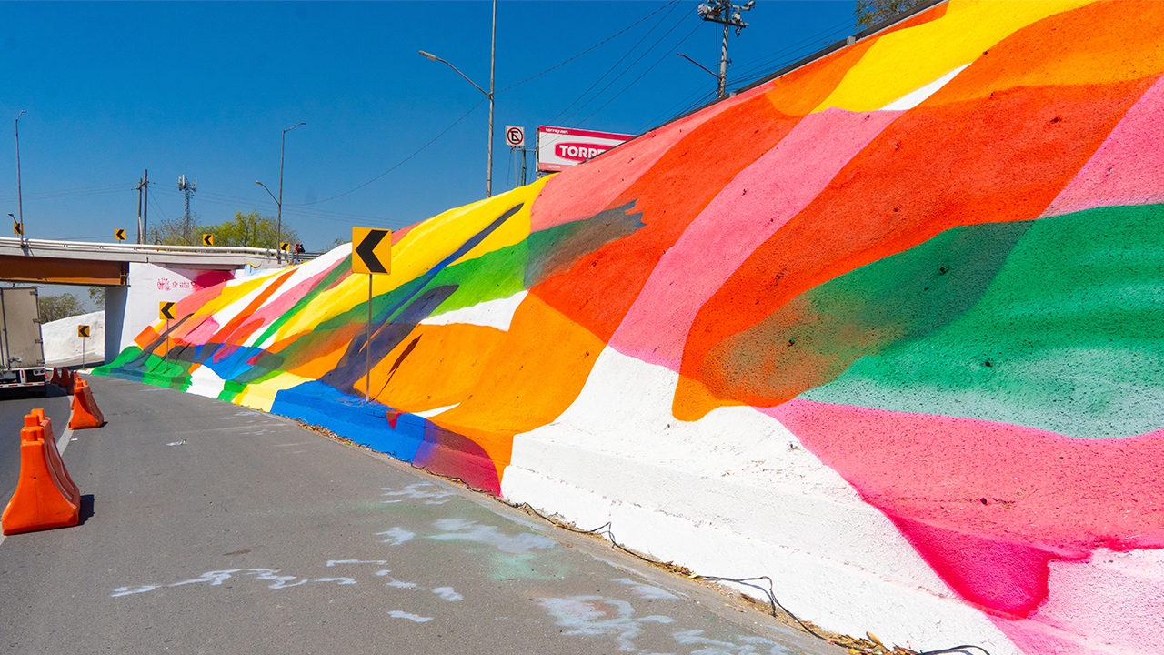 - La pieza "El dinamismo y la vitalidad de Monterrey" inaugura formalmente el Corredor FIFA; con mil 100 metros cuadrados, el mural de mayor extensión en este trayecto.