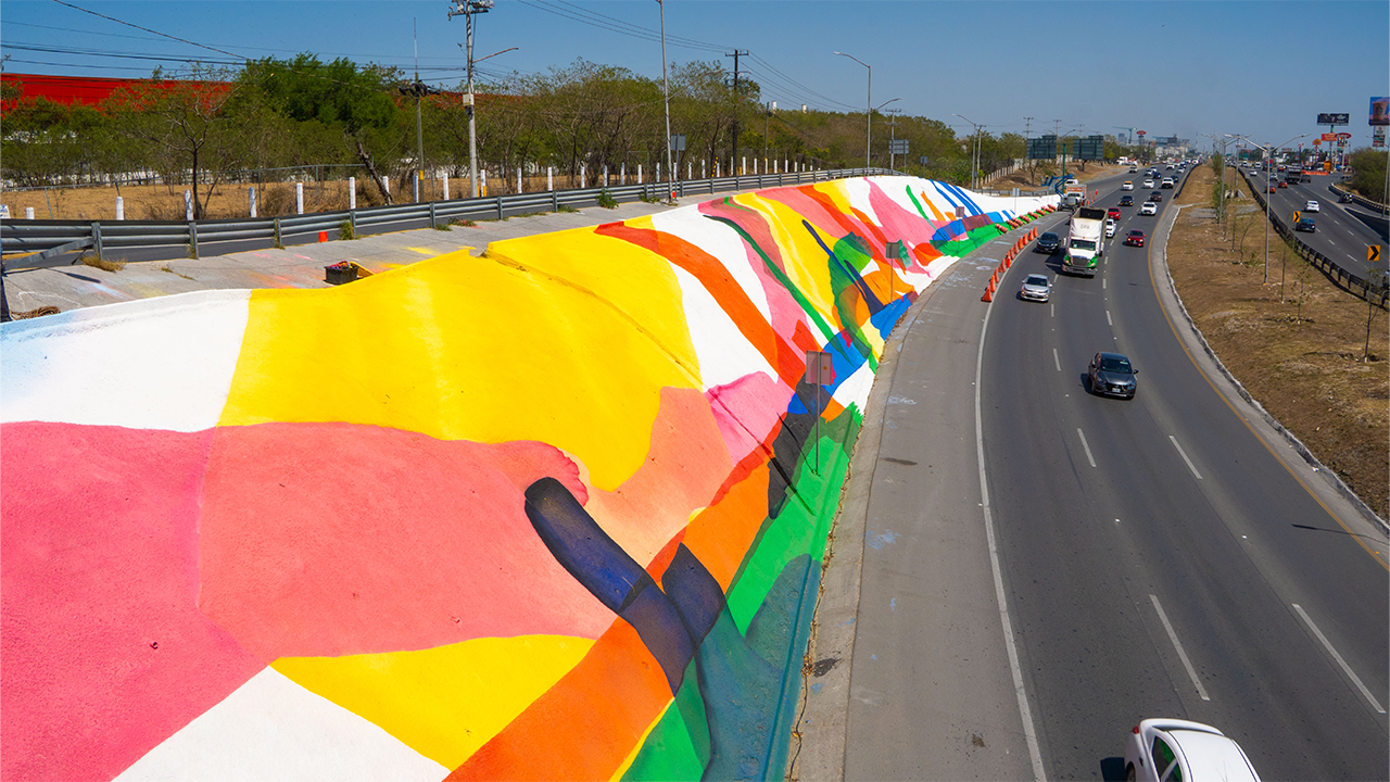 "Es una reinterpretación de Monterrey, su paisaje y sus montañas. Lo que buscaba es que llame la atención en cualquier punto que lo veas; si vas pasando en el coche o si lo ves desde lejos del puente".