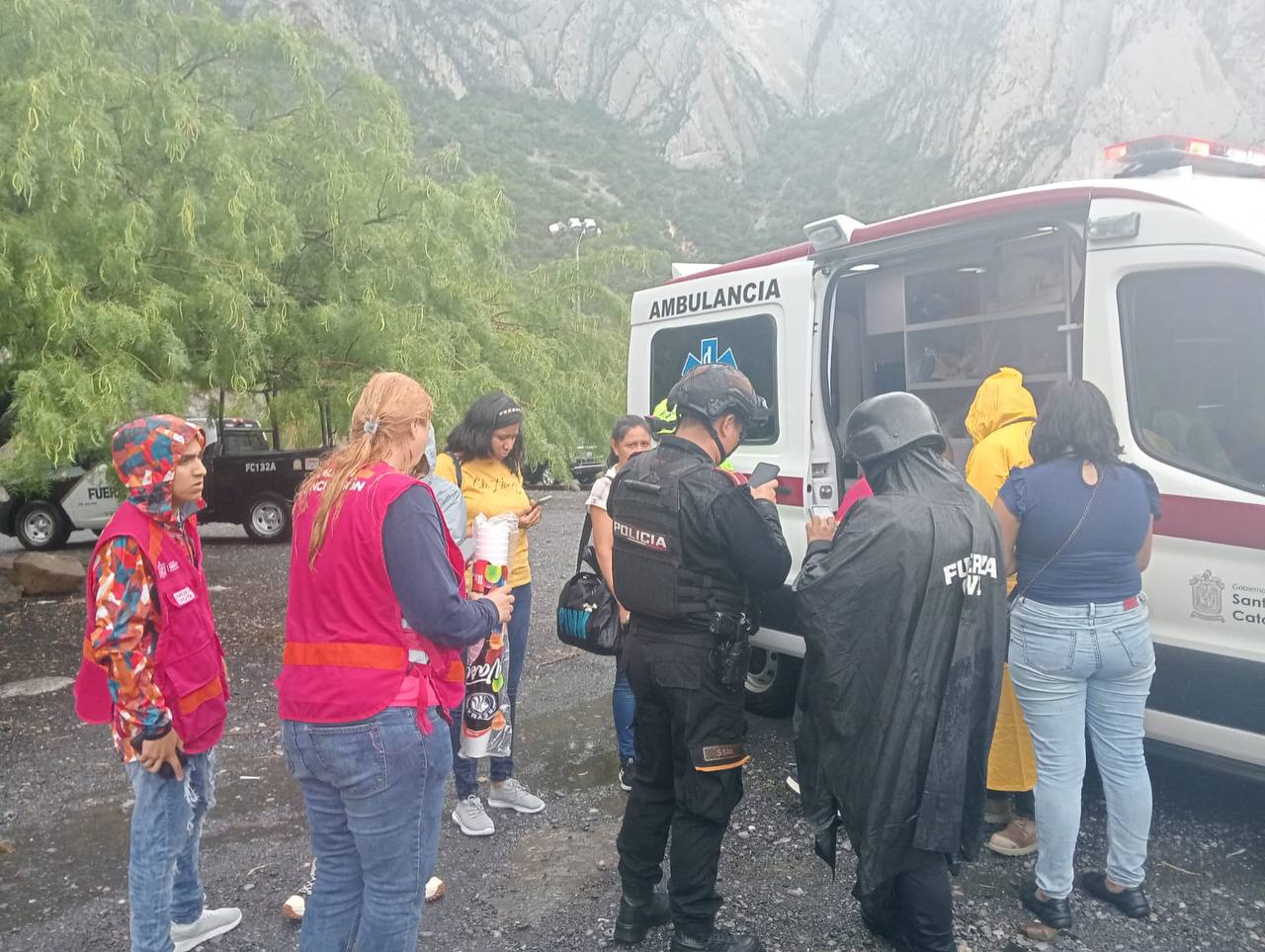 Los habitantes auxiliados eran de las comunidades: Los Nogales, El Capricho, Los Horcones, Buenos Aires y El Rodeo; los cuales fueron trasladados hacia la entrada del Parque Ecológico. Ahí algunos solicitaron ser resguardados en el albergue temporal del DIF de Santa Catarina, ubicado en la colonia Centro; mientras que otros se refugiaron con sus familiares. Además, en zonas de bajo riesgo, hubo 80 familias que se negaron a ser trasladas por lo que se les entregaron despensas y productos de primera necesidad.