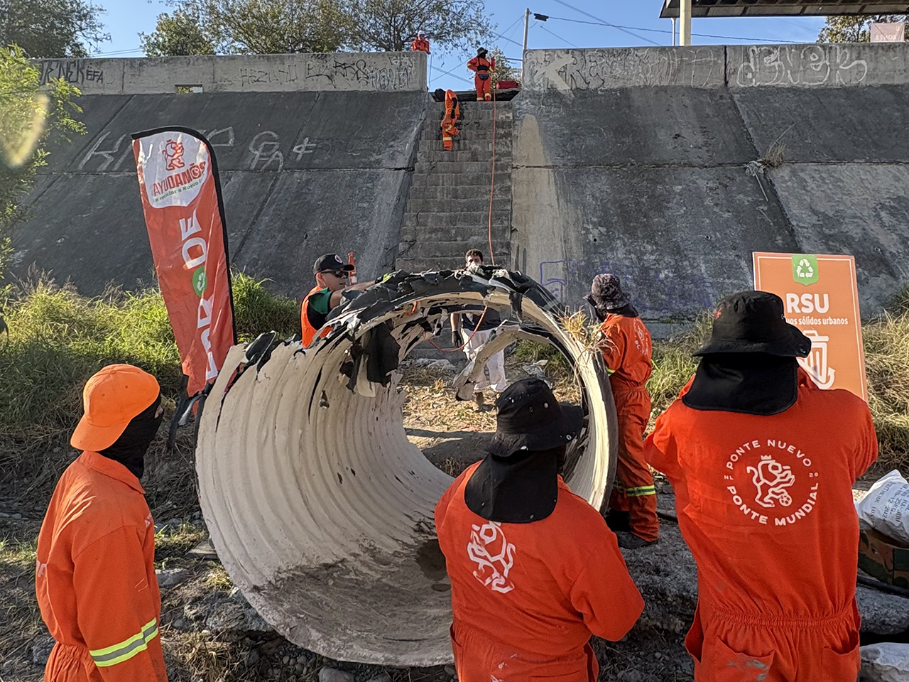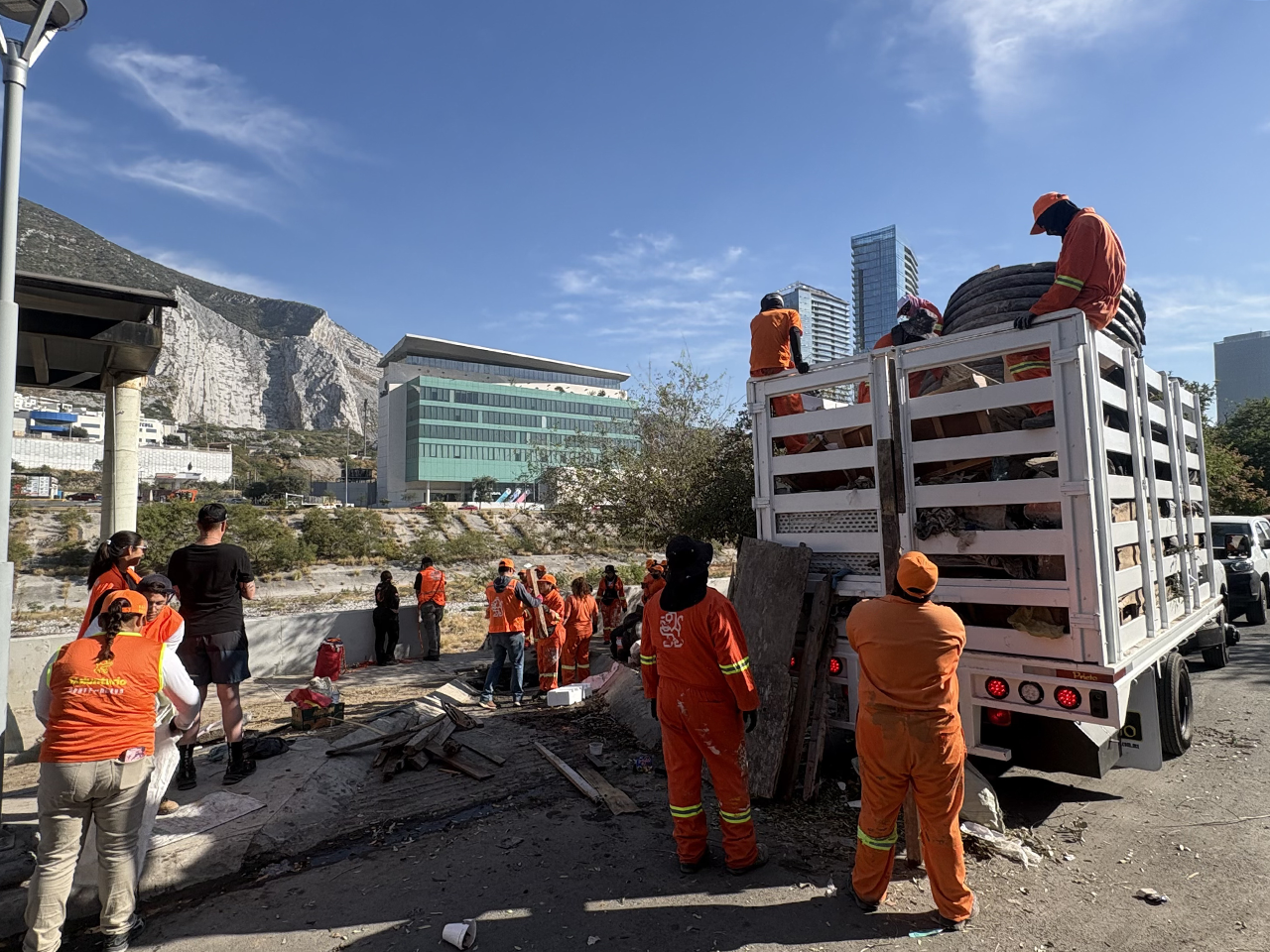Monterrey, Nuevo León.- El voluntariado Leones en Acción de la Secretaría de Participación Ciudadana sumó 45.7 toneladas de residuos y 488 llantas retiradas del Río Santa Catarina en 12 mil 260 horas de voluntariado.
