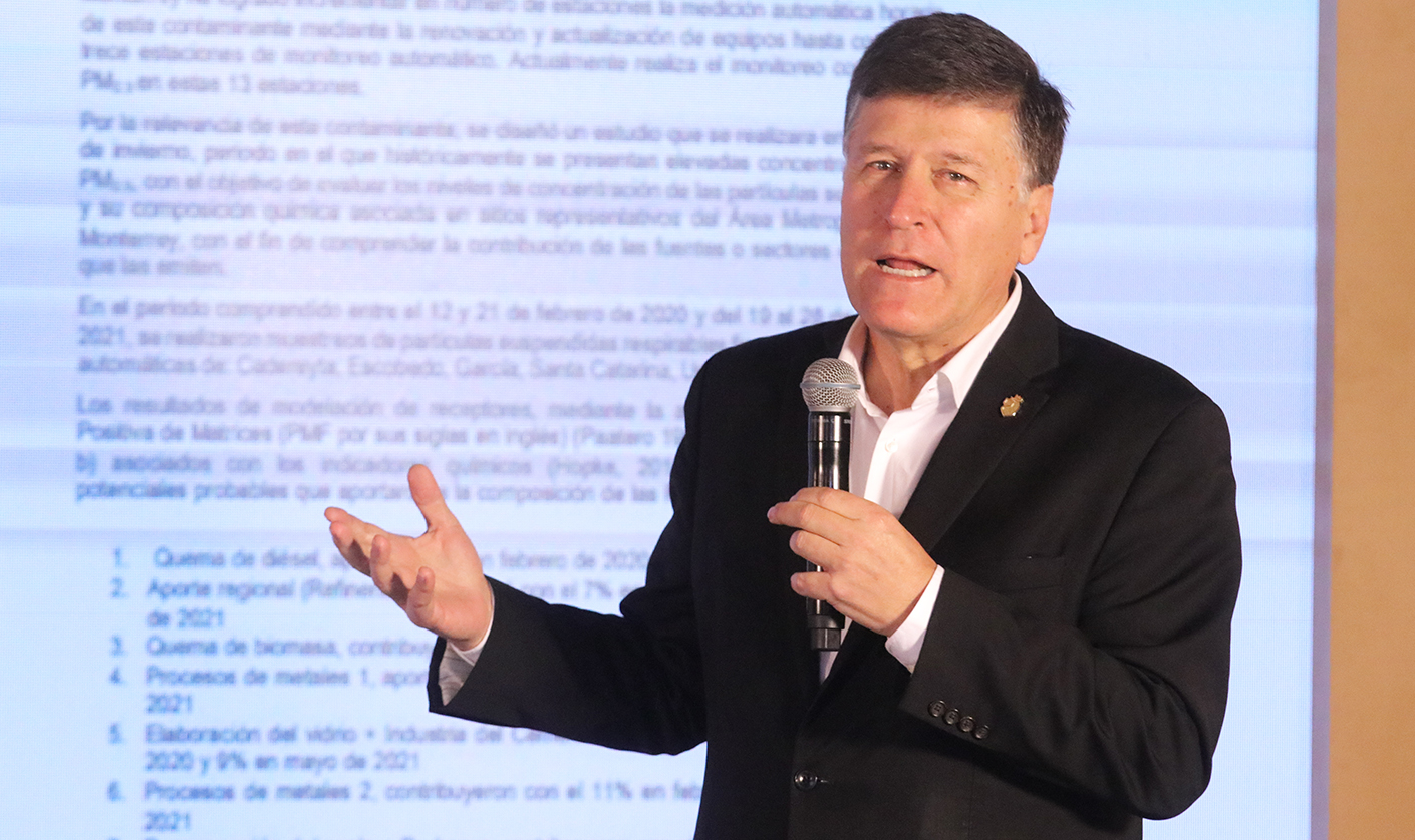 En ese mismo tema, el funcionario aprovechó para aclarar los datos del estudio de Análisis de Informe final del proyecto de Caracterización química de partículas suspendidas PM2.5 en el Área Metropolitana de Monterrey, en el que se precisa que la refinería contribuyó con un 7% en la emisión de dicho contaminante en febrero de 2020 y 6% en mayo de 2021, es decir, muy poco, sin embargo explicó que en este no se incluyeron los sulfatos, que es el principal componente que sale de la planta de Pemex a través de las emisiones de dióxido de azufre.