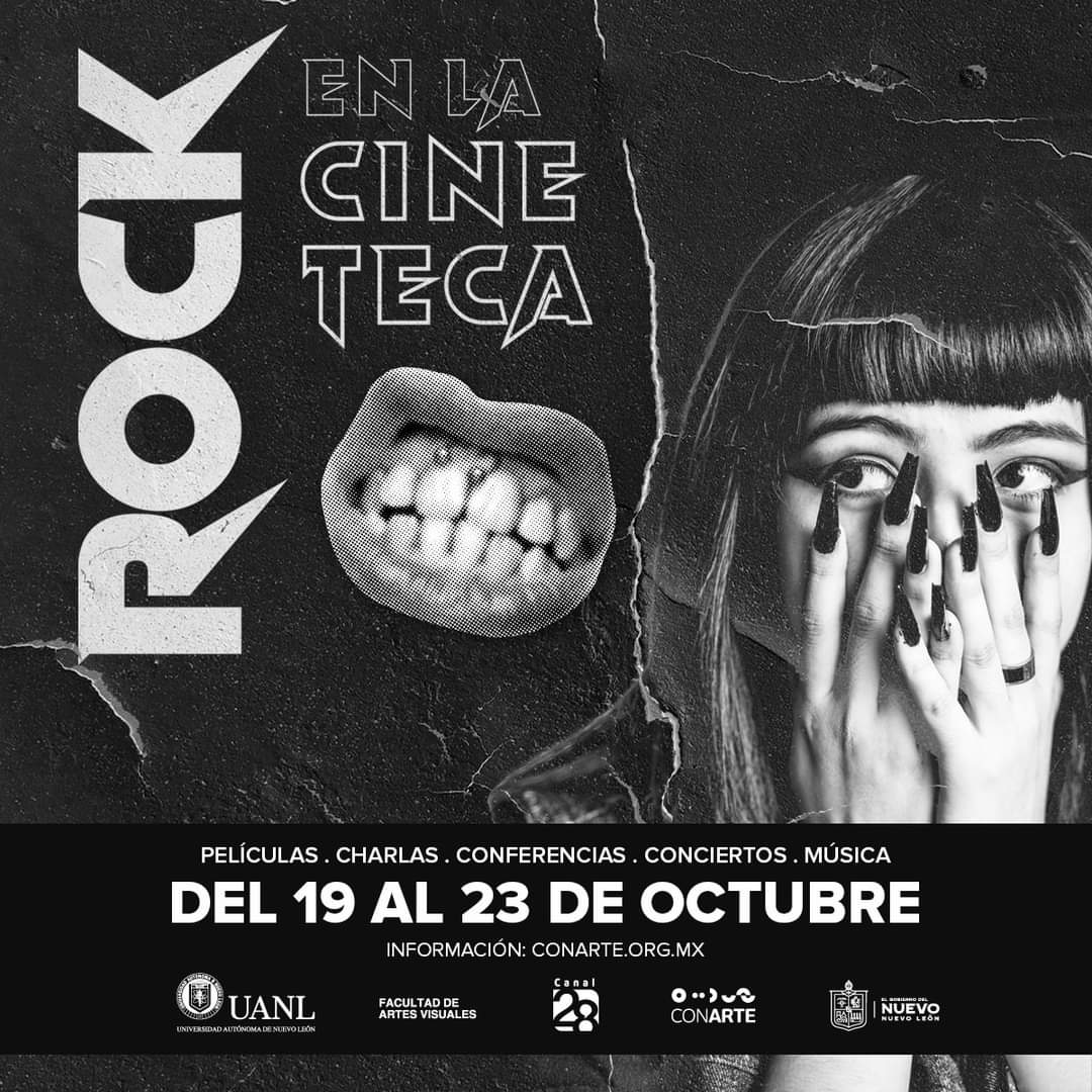 El Rock y el cine siempre han estado unidos, para muestra: Rock en la CINETECA, una producción que se inserta a la agenda de actividades de la CINETECA “Alejandra Rangel Hinojosa” y la nave Generadores del Centro de las Artes | CONARTE, que del 19 al 23 de octubre serán la sede oficial del evento, que tendrá como sede alterna la Facultad de Artes Visuales de la UANL.