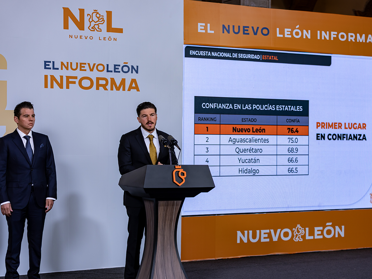 Monterrey, Nuevo León.- El Gobernador del Estado, Samuel Alejandro García dio a conocer que la Encuesta Nacional de Seguridad Pública Urbana (ENSU), realizada trimestralmente por el INEGI, reveló que la nueva Fuerza Civil Nuevo León mantuvo el primer lugar nacional como la policía estatal con mayor confianza ciudadana.