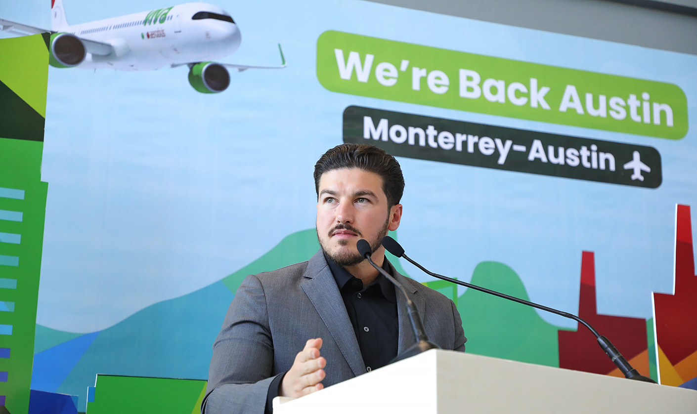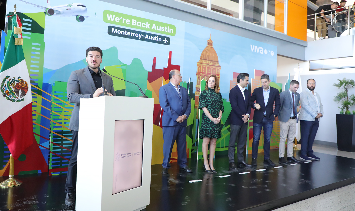 En el evento, el Gobernador de Nuevo León destacó que este vuelo, junto a otros que iniciará Viva Aerobús son un potencial enorme, pues representan grandes beneficios de conectividad, no sólo con Monterrey, sino que enlaza a los viajeros de Austin con 50 urbes más del país.