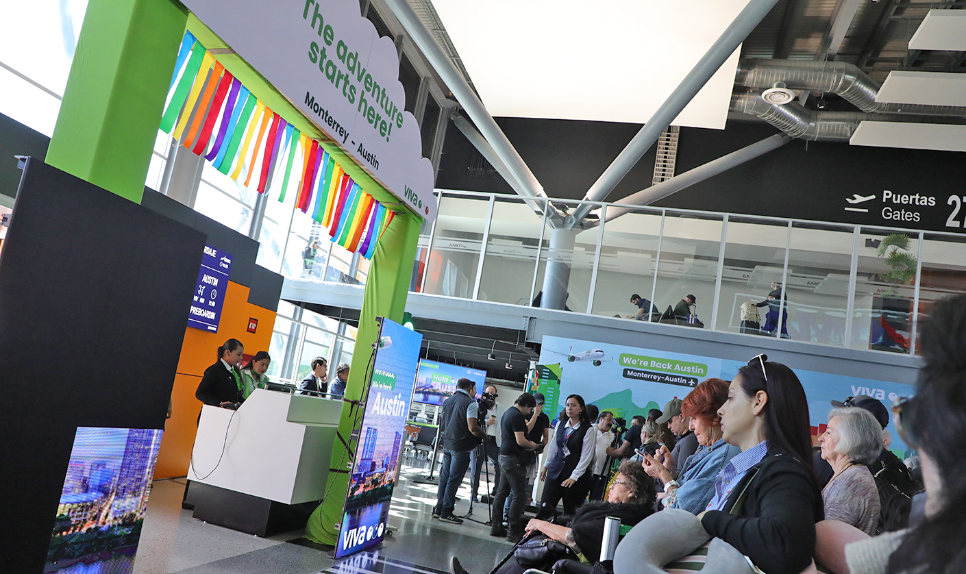 Apodaca, Nuevo León.- Nuevo León continúa consolidándose como Hub Aeroportuario con el inicio de operaciones de la ruta internacional de Viva Aerobús Monterrey-Austin en la Plataforma Terminal C del Aeropuerto Internacional de Monterrey, servicio que contará con cuatro frecuencias a la semana.