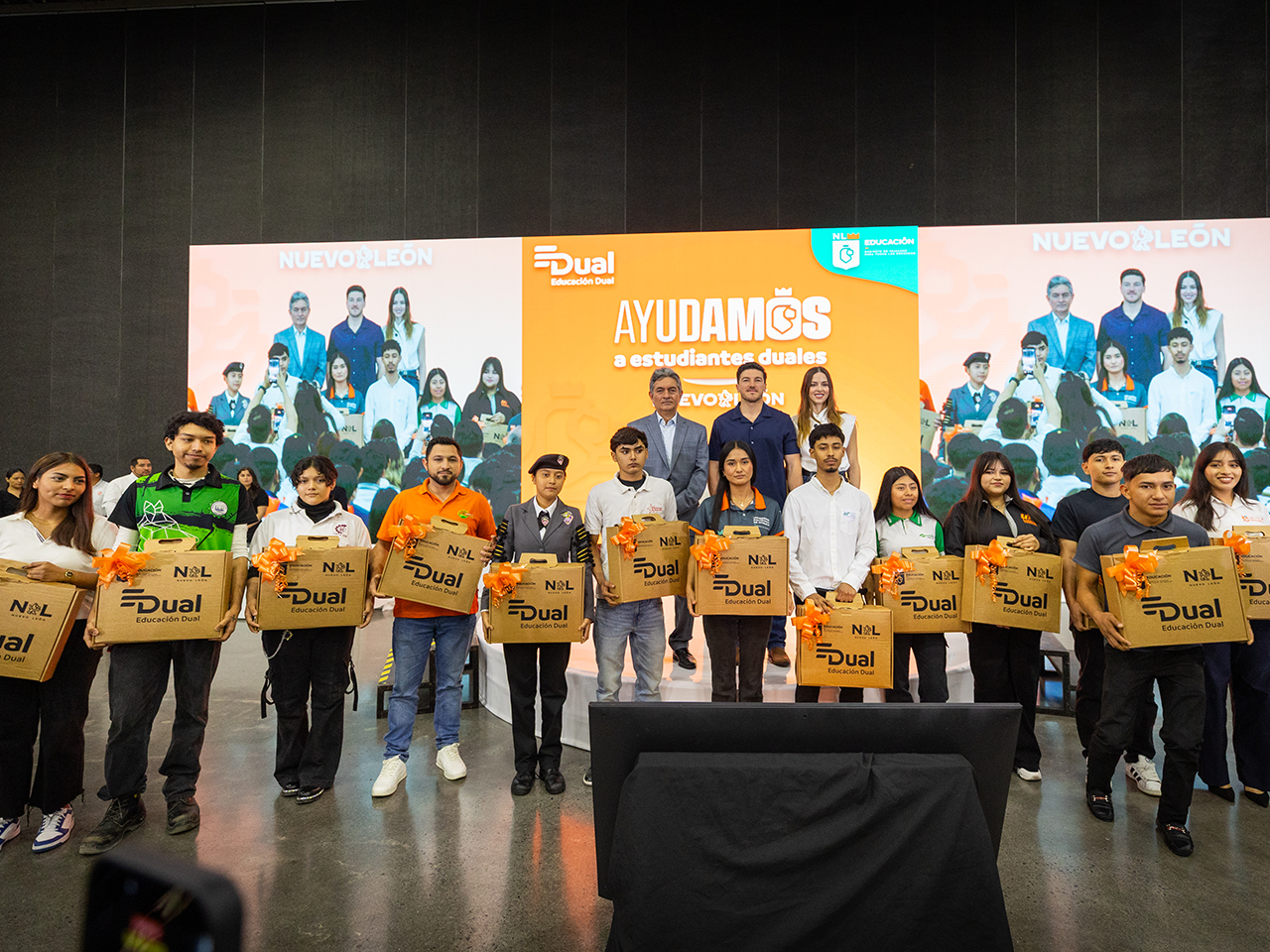 Monterrey, Nuevo León.- El Gobernador Samuel Alejandro García Sepúlveda y la Titular de Amar a Nuevo León, Mariana Rodríguez Cantú entregaron 2 mil computadoras laptop a estudiantes de Educación Dual, lo que permite a Nuevo León consolidarse como líder nacional en la implementación de este modelo educativo.