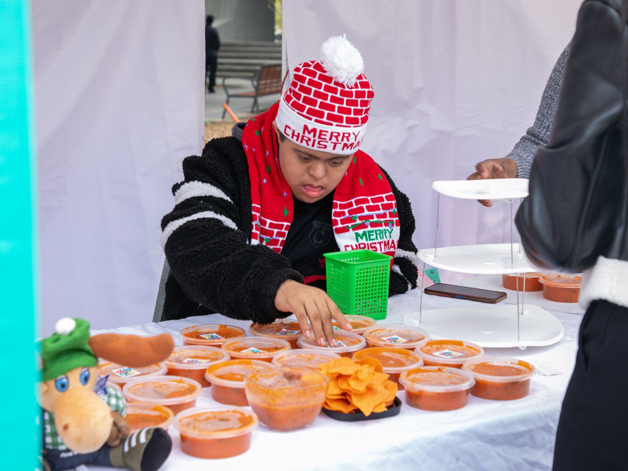 En este espacio, las alumnas y los alumnos ofrecieron productos alimenticios, de carpintería, jardinería, repostería, entre otros, elaborados a partir de las habilidades que han desarrollado en los CAM con Formación Laboral y para el Trabajo.