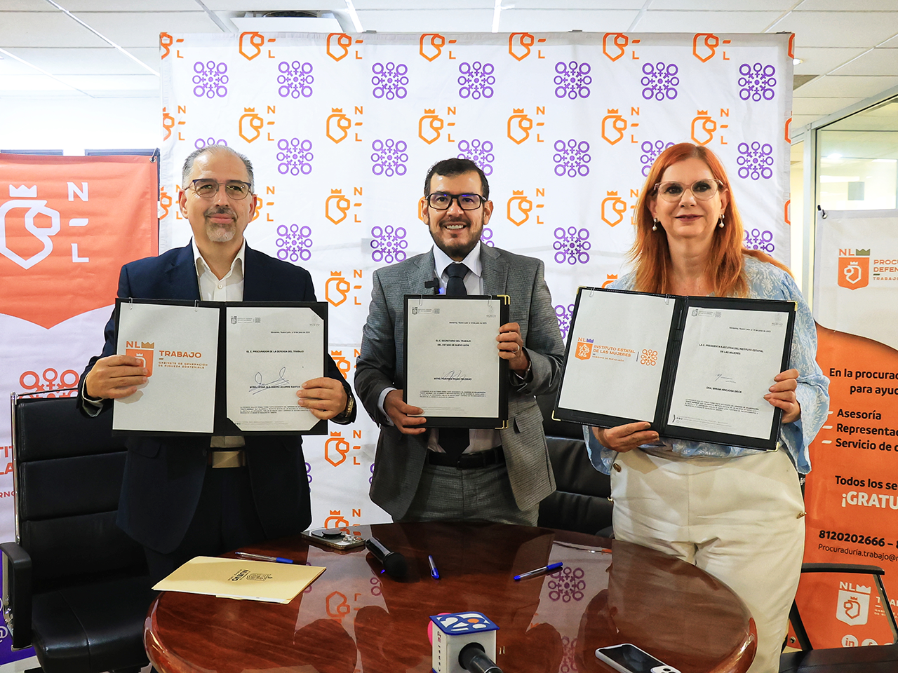 Monterrey, Nuevo León.- Prevenir y erradicar la violencia contra las mujeres es una prioridad para la administración estatal, por lo que este jueves Miriam Hinojosa Dieck, Presidenta Ejecutiva del Instituto Estatal de las Mujeres; Federico Rojas Veloquio, Secretario del Trabajo y César Alejandro Aguirre Santos – Procurador de la Defensa del Trabajo, instalaron un Punto Naranja en sus instalaciones.