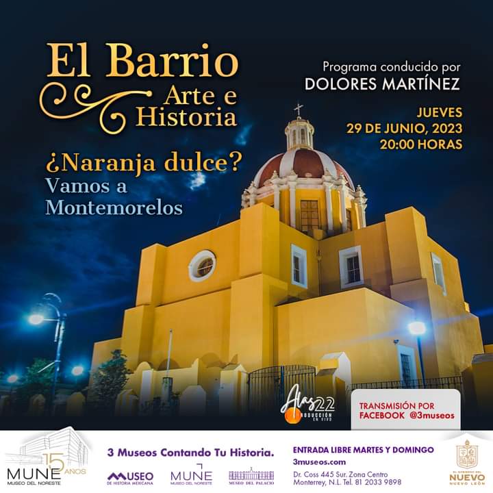 El Barrio. Arte e Historia. ¿Naranja dulce? Vamos a Montemorelos, se transmitirá por la página Facebook de 3 Museos, el jueves 29 de junio a las 20:00 horas.