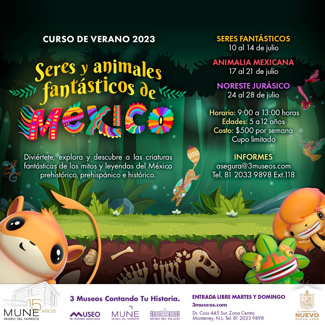 Este verano, las niñas y niños de Nuevo León conocerán a los Seres y animales fantásticos de México en el Curso de Verano que 3 Museos ha preparado. Tres semanas de divertidas actividades para descubrir a las criaturas fantásticas en los mitos y leyendas del México prehistórico, prehispánico e histórico.