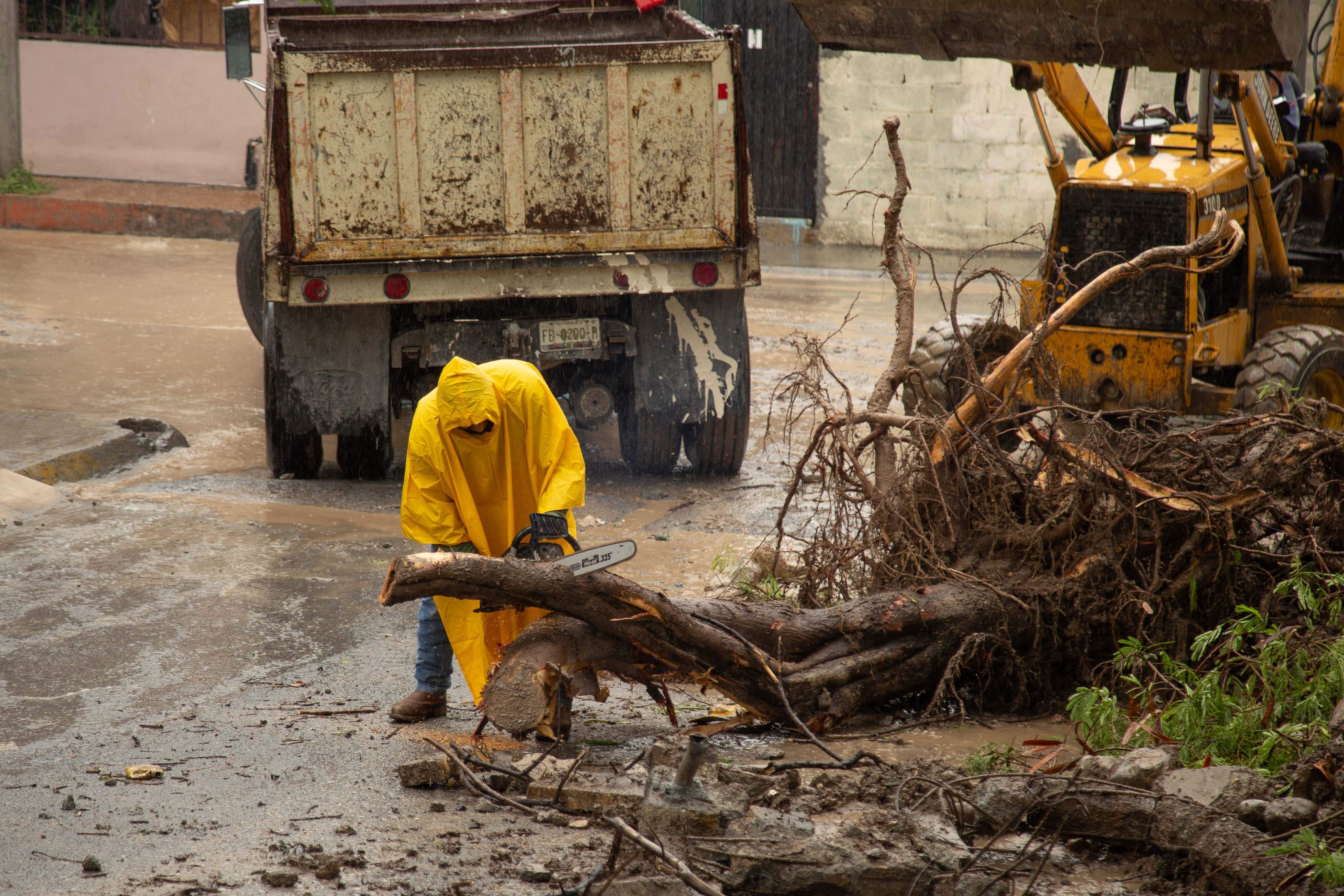 Monterrey, Nuevo León.- Las cuadrillas de Recursos Materiales y Servicios de la Secretaría de Educación, pusieron en marcha el operativo de atención especializada en planteles de Educación Básica, ante la tormenta tropical que azota a la entidad.