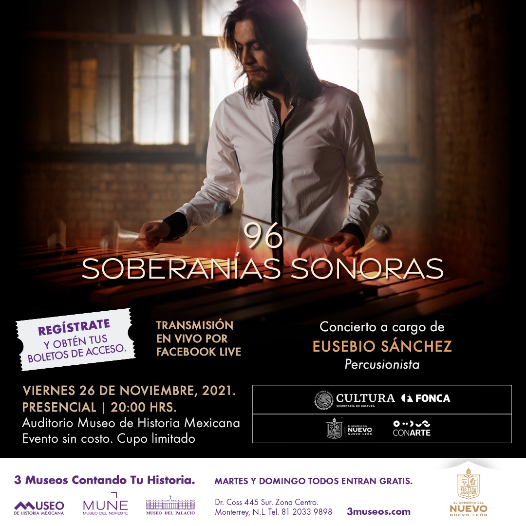 El viernes 26 de noviembre tocará el turno al percusionista Eusebio Sánchez con sus 96- Soberanías Sonoras, un concierto de música contemporánea de soporte fijo y “live electronics” para percusión a través de compositores de México y Reino Unido.