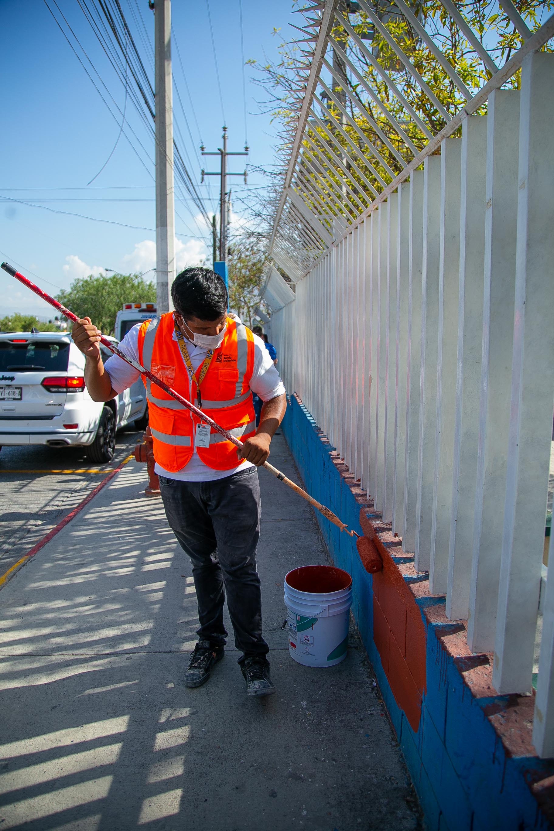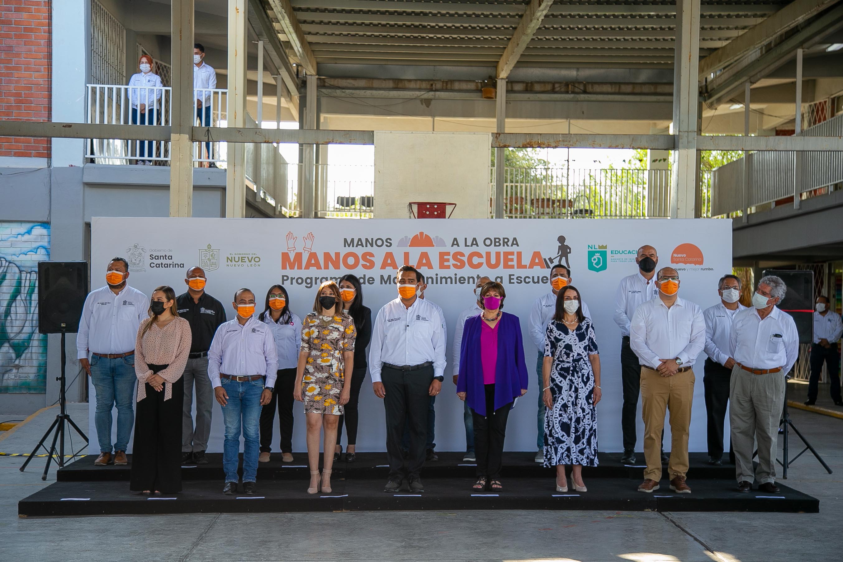 Preparando el inicio del próximo ciclo escolar 2022-2023, la Secretaría de Educación, en coordinación con el municipio de Santa Catarina, arrancó con el programa de mantenimiento a escuelas con necesidades apremiantes.
