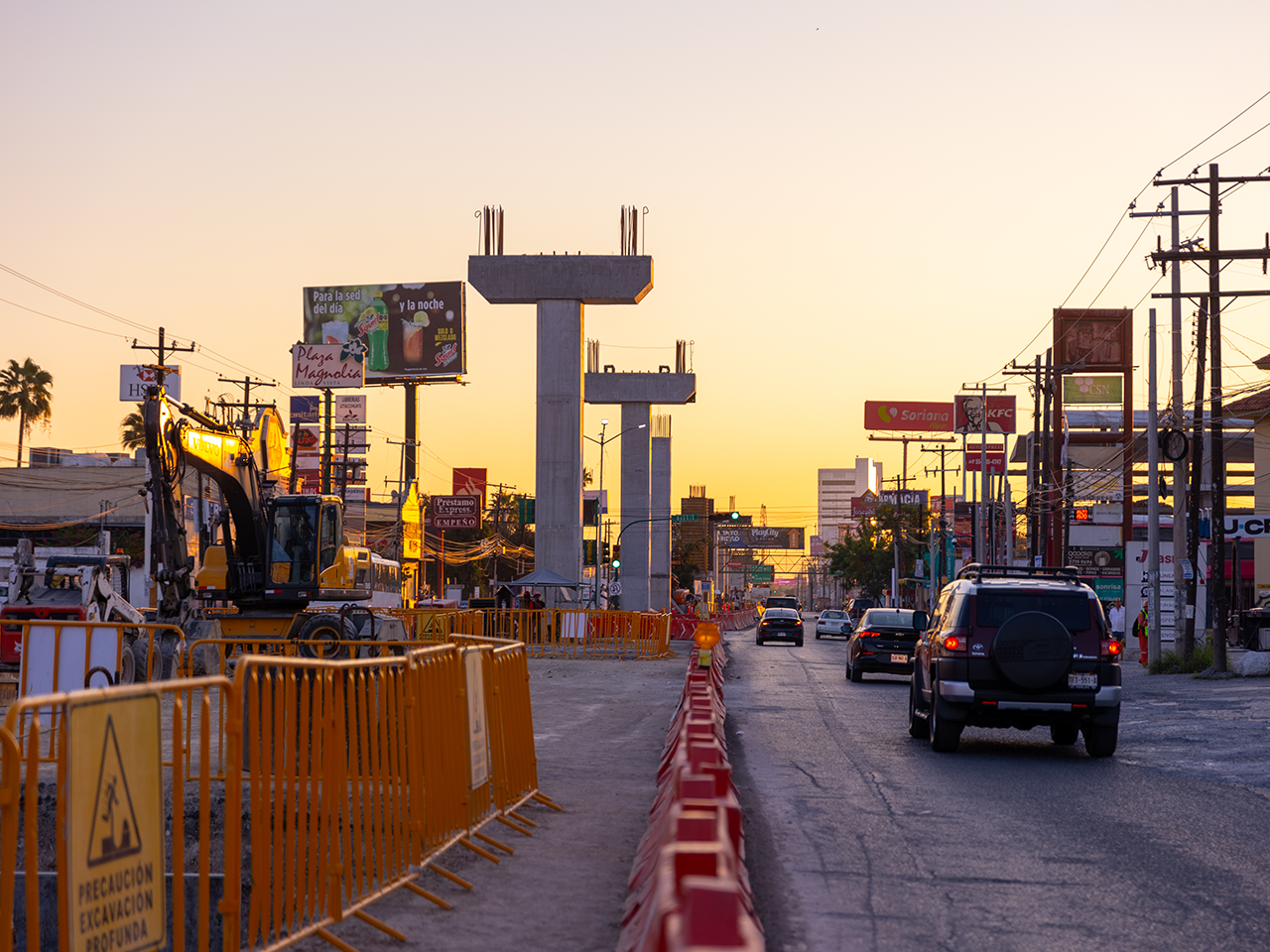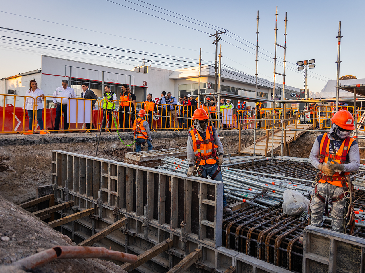 Como parte de los trabajos de la construcción de esta obra de movilidad, la Línea el Mandatario estatal realizó una supervisión en distintos puntos sobre avenida Miguel Alemán, acompañado de funcionarios estatales y constructores.