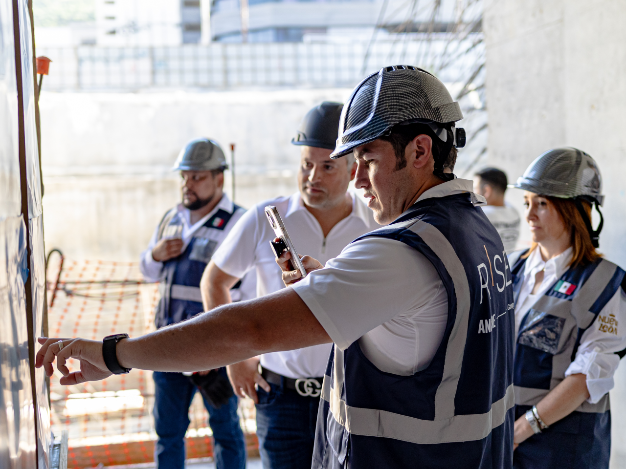 Monterrey, Nuevo León.- El Gobernador del Estado, Samuel Alejandro García Sepúlveda, supervisó este jueves las obras de construcción de la Torre Rise, que se edifica sobre la Avenida Constitución y que presenta un avance global del 19 por ciento.