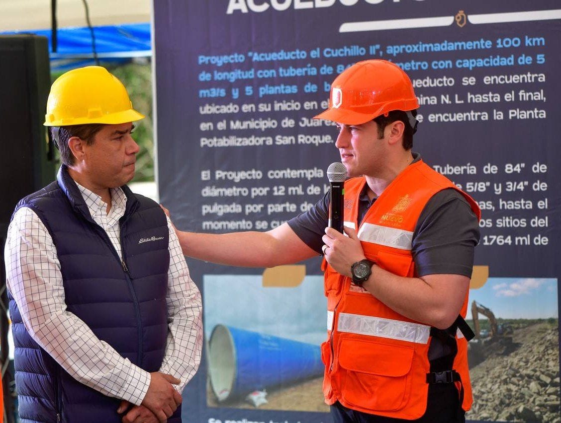 Tras supervisar la obra del Acueducto El Cuchillo II en el municipio de Juárez, el Gobernador Samuel Alejandro García Sepúlveda agradeció el apoyo y la coordinación de la Federación, la iniciativa privada y las empresas que participan en el proyecto hídrico.