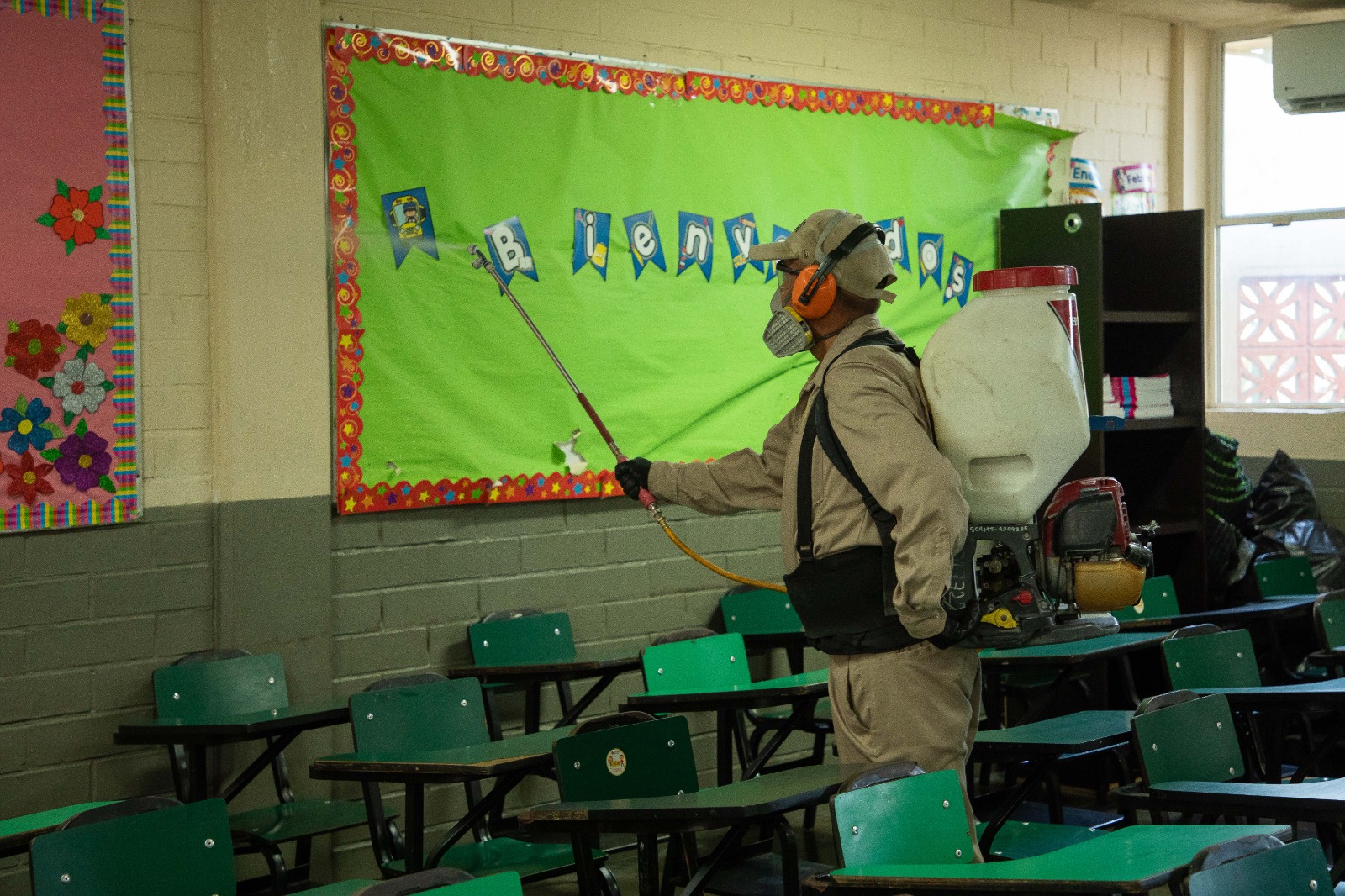 Los trabajos que realizó el personal de salud consistieron en implementar acciones preventivas de fumigación en salones, patios y áreas de juego; además de verificar que no haya áreas de riesgo en donde pudiesen existir larvas o algún otro tipo de mosquito.