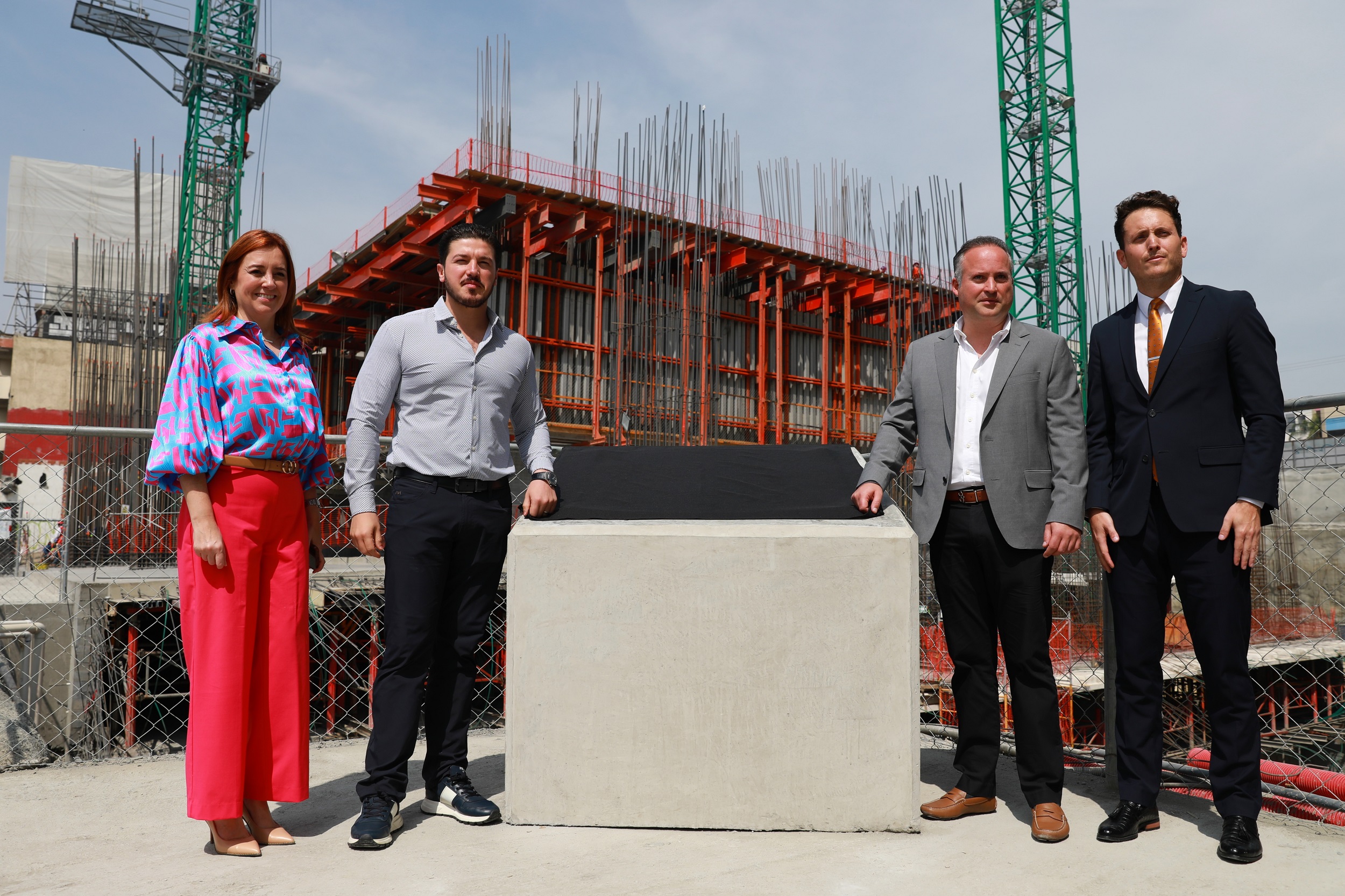 Monterrey, Nuevo León.- Como parte de los eventos de conmemoración por los 200 Años de Nuevo León, el equipo de trabajo del Gobierno del Estado supervisó la conclusión del colado de losa en el proceso de construcción de la Torre Rise.