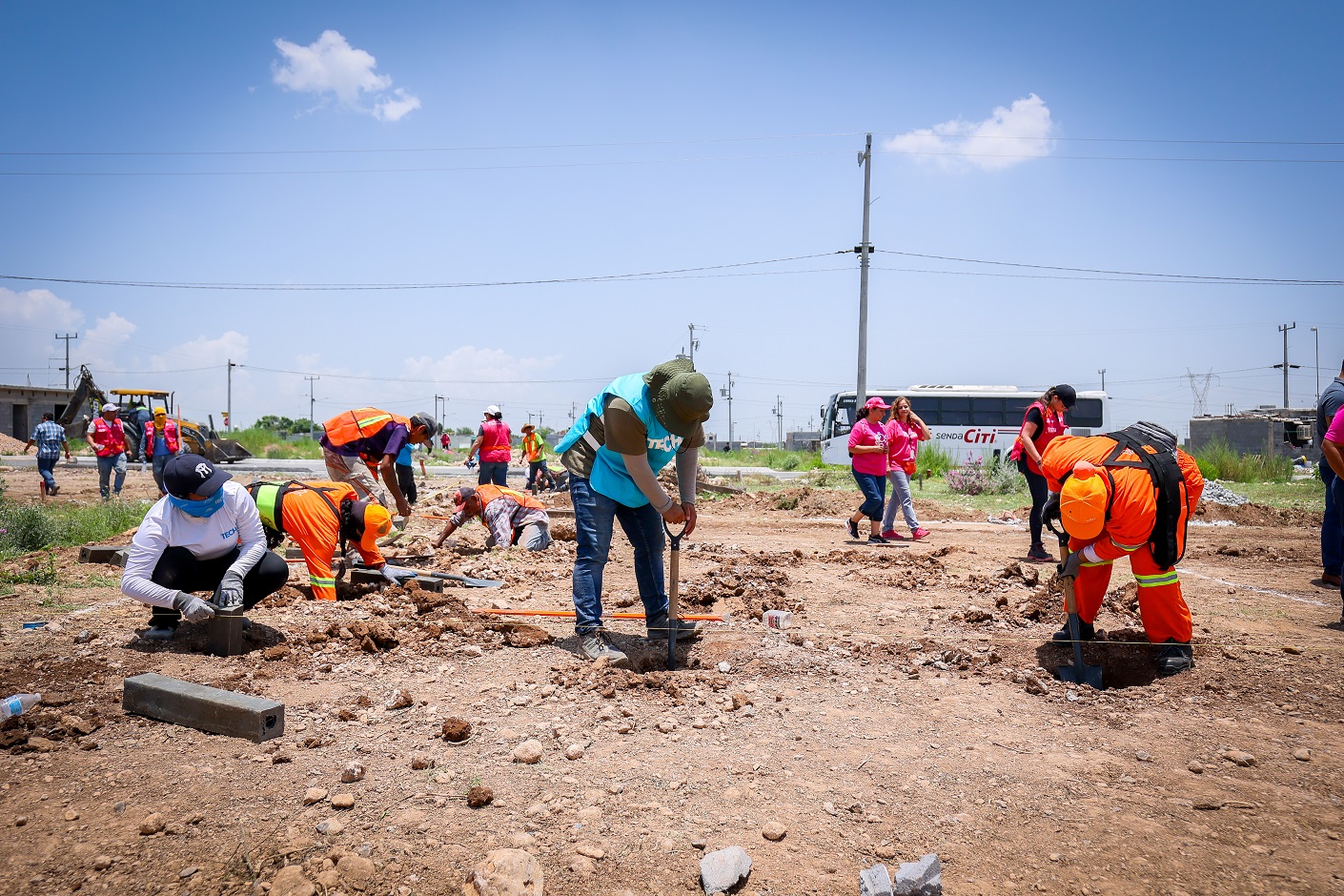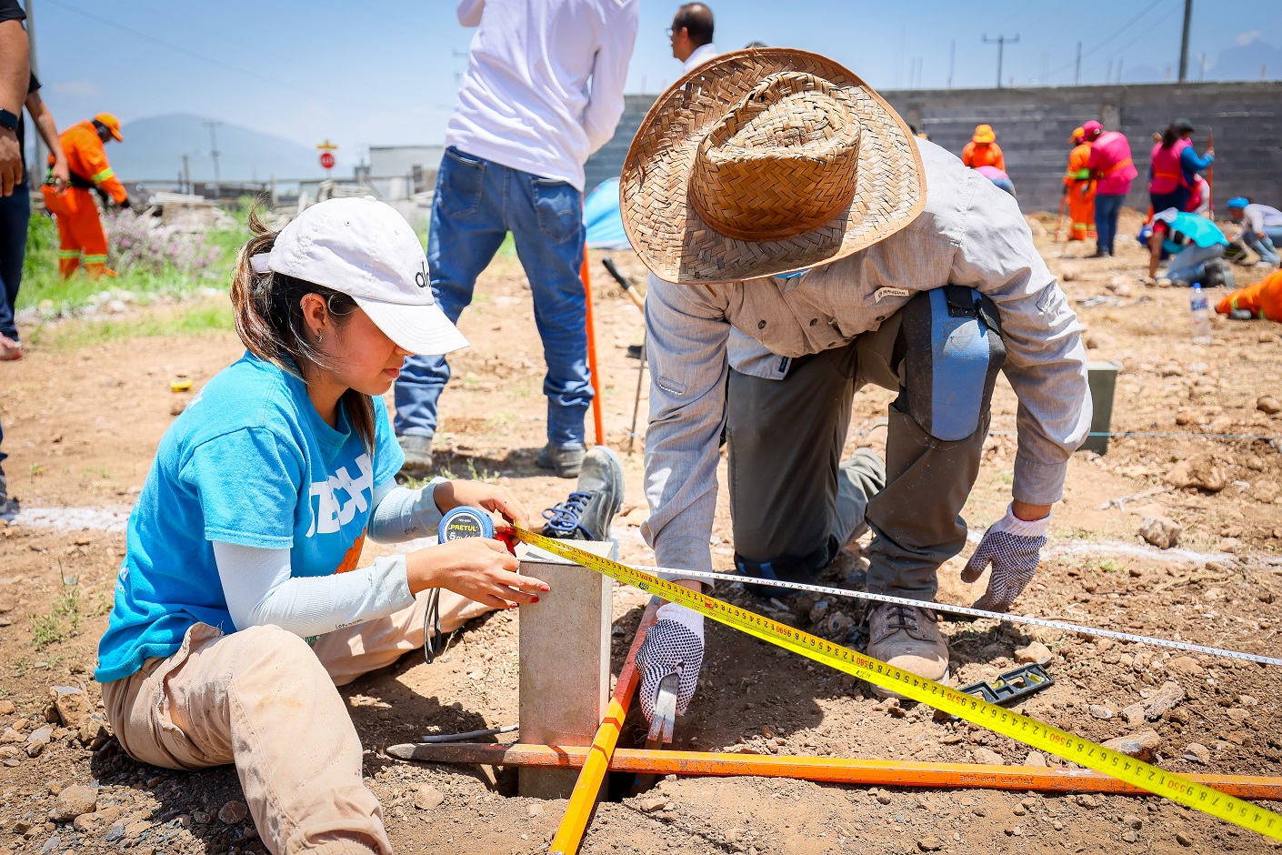 En el fraccionamiento Hacienda San Miguel, donde trabajaron más de un centenar de voluntarios de distintas dependencias estatales y de la organización civil Techo, promotora de esta iniciativa, la secretaria Martha Herrera realizó un recorrido por el predio, participó en la colocación de pilotes y supervisó la instalación de vigas, paredes, paneles y techos.