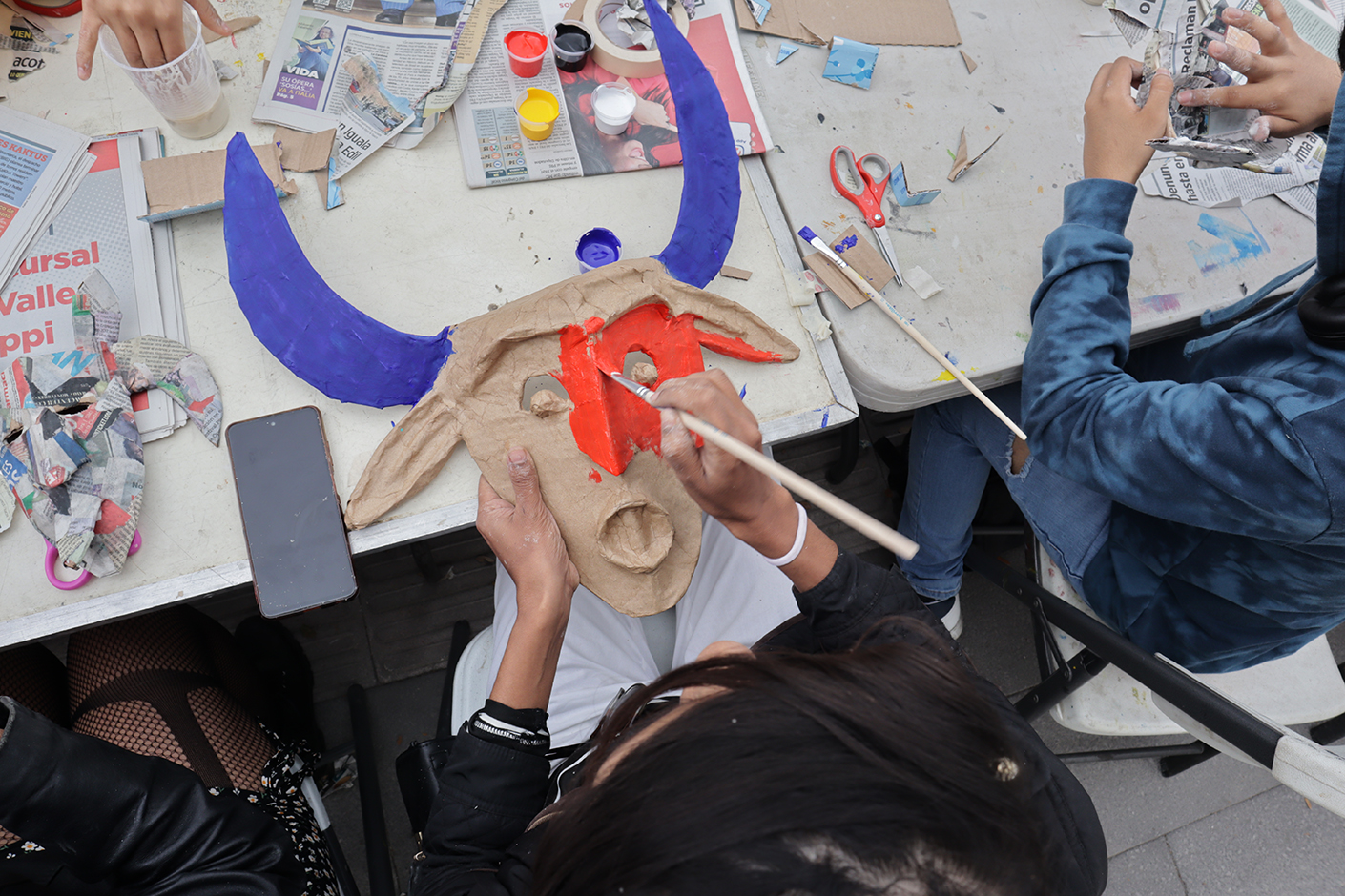 Previo a la danza, se impartió el taller de cartonería a cargo de la Fundación Kawoq 13:20 A.C., en el que los asistentes elaboraron su propia máscara chicalera.