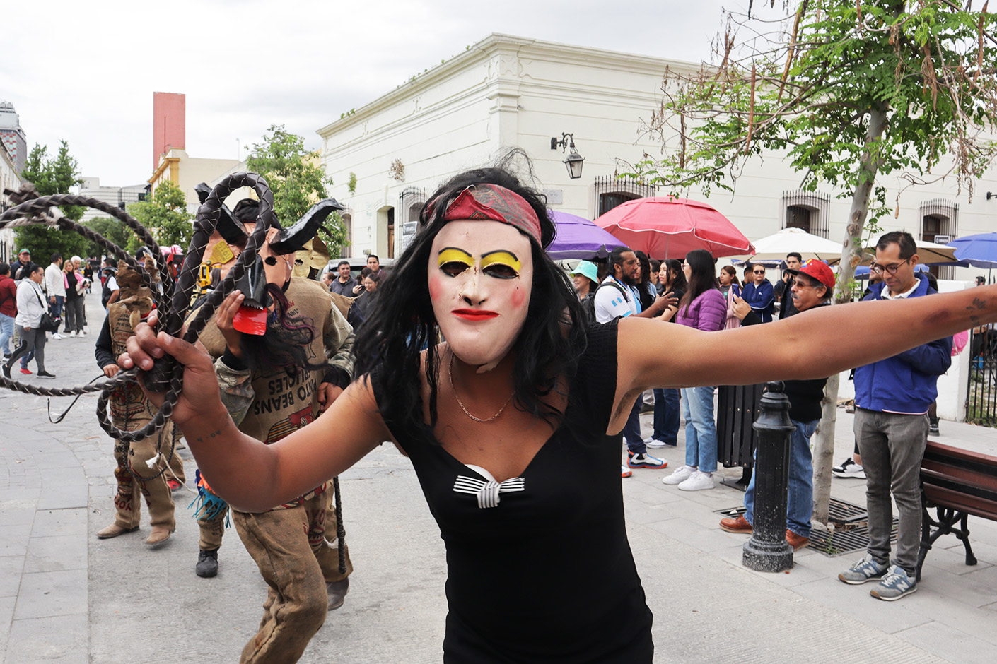 Monterrey, Nuevo León.- Los Viejos Chiclearos del Ejido San Francisco de los Blancos de Galeana, N.L., danzaron en las calles del Barrio Antiguo de Monterrey como parte de las actividades del Día del Patrimonio de Nuevo León.