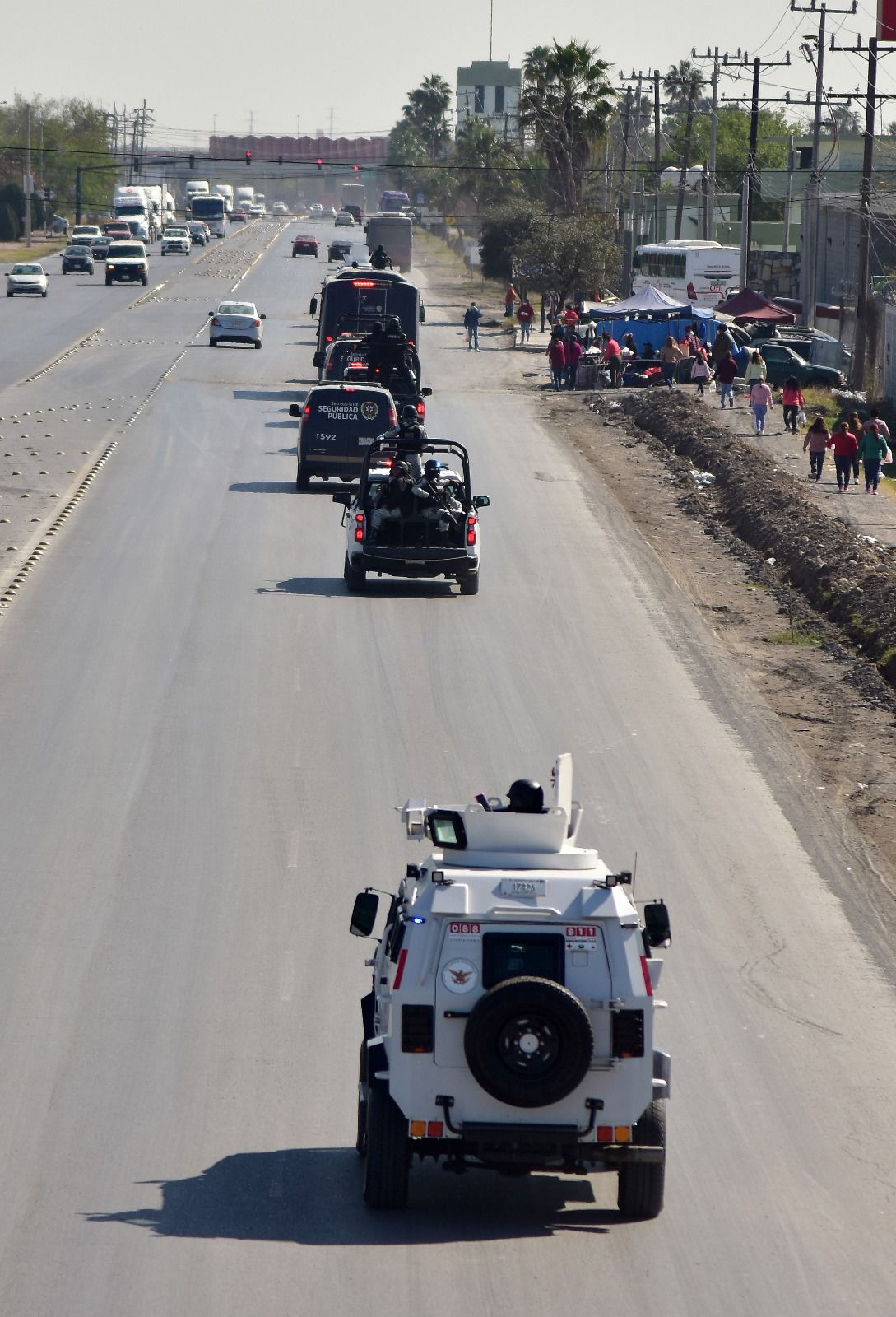 Durante el trayecto, y como medida de seguridad, se contó la presencia de policías y unidades de Fuerza Civil y la Guardia Nacional.