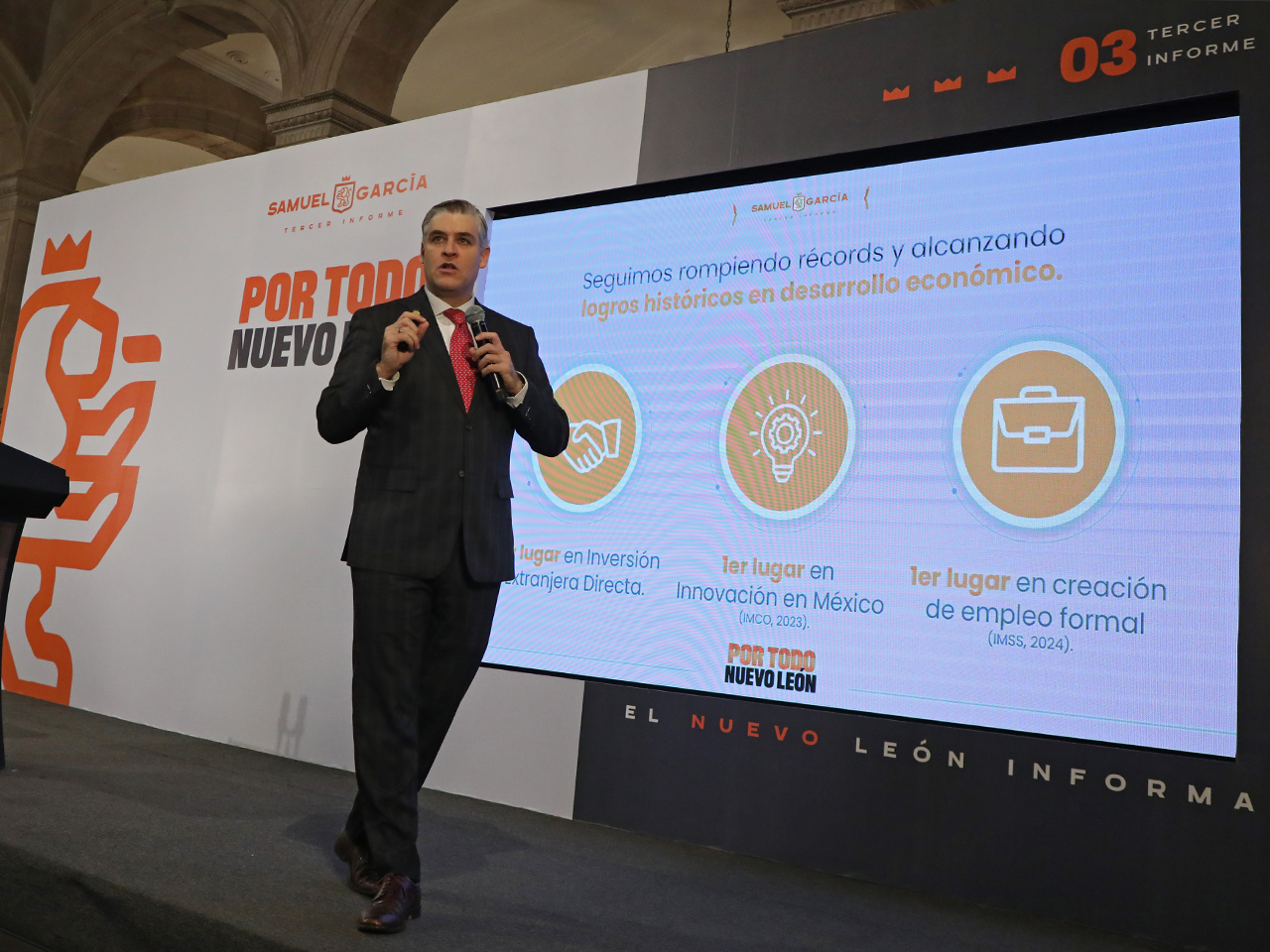 Monterrey, Nuevo León.- Tras tres años de la administración que encabeza el Gobernador Samuel Alejandro García Sepúlveda, Nuevo León continúa imparable rompiendo récords en desarrollo económico, al posicionarse en primer lugar en inversión extranjera, creación de empleos y empresas.