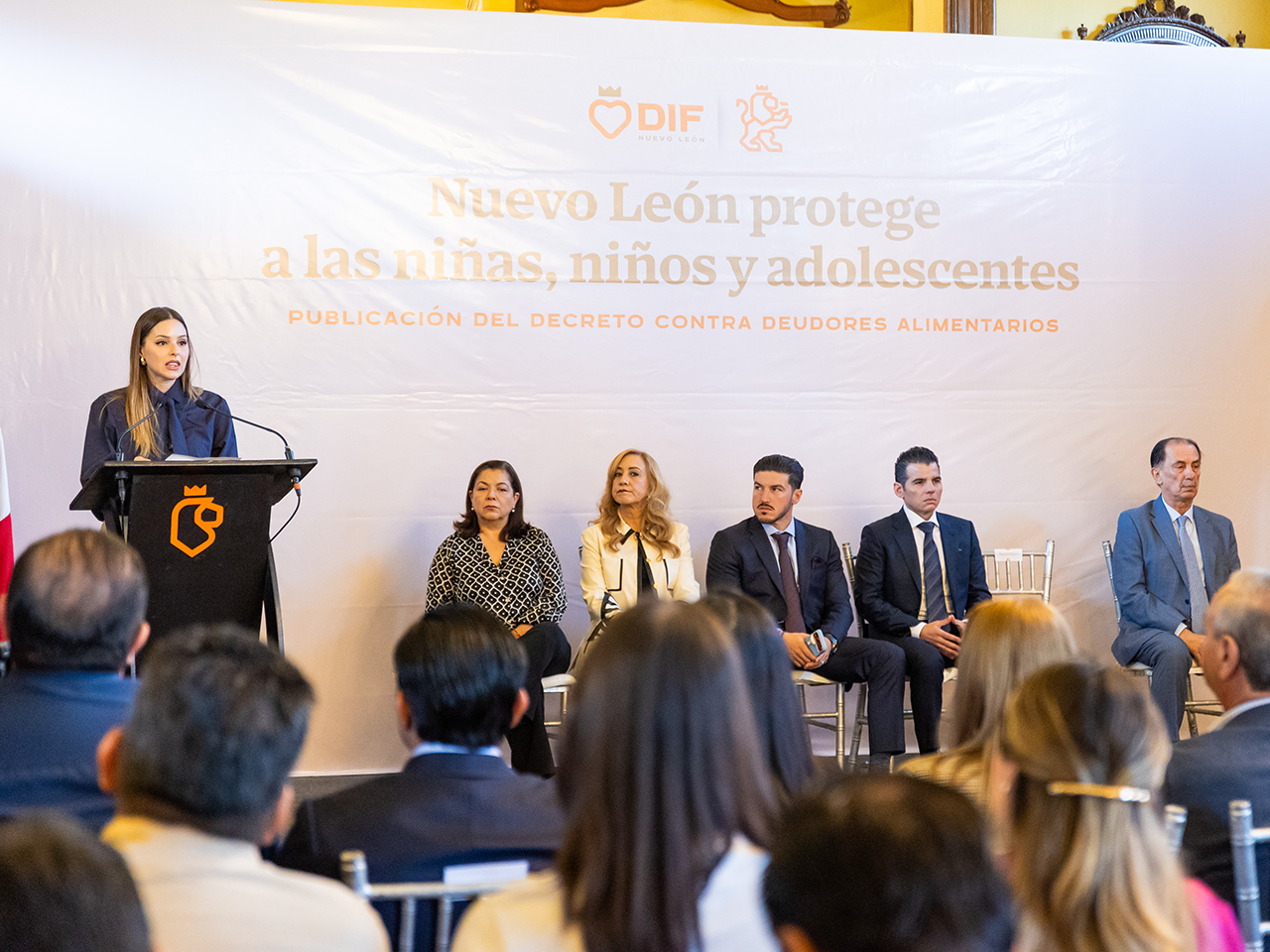 En su intervención Mariana Rodríguez Cantú señaló que con la publicación del Decreto sobre Deudores Alimentarios el Estado da un paso en defensa a las madres y lo más importante, un paso que representa protección a las niñas, niños y adolescentes del estado de Nuevo León.