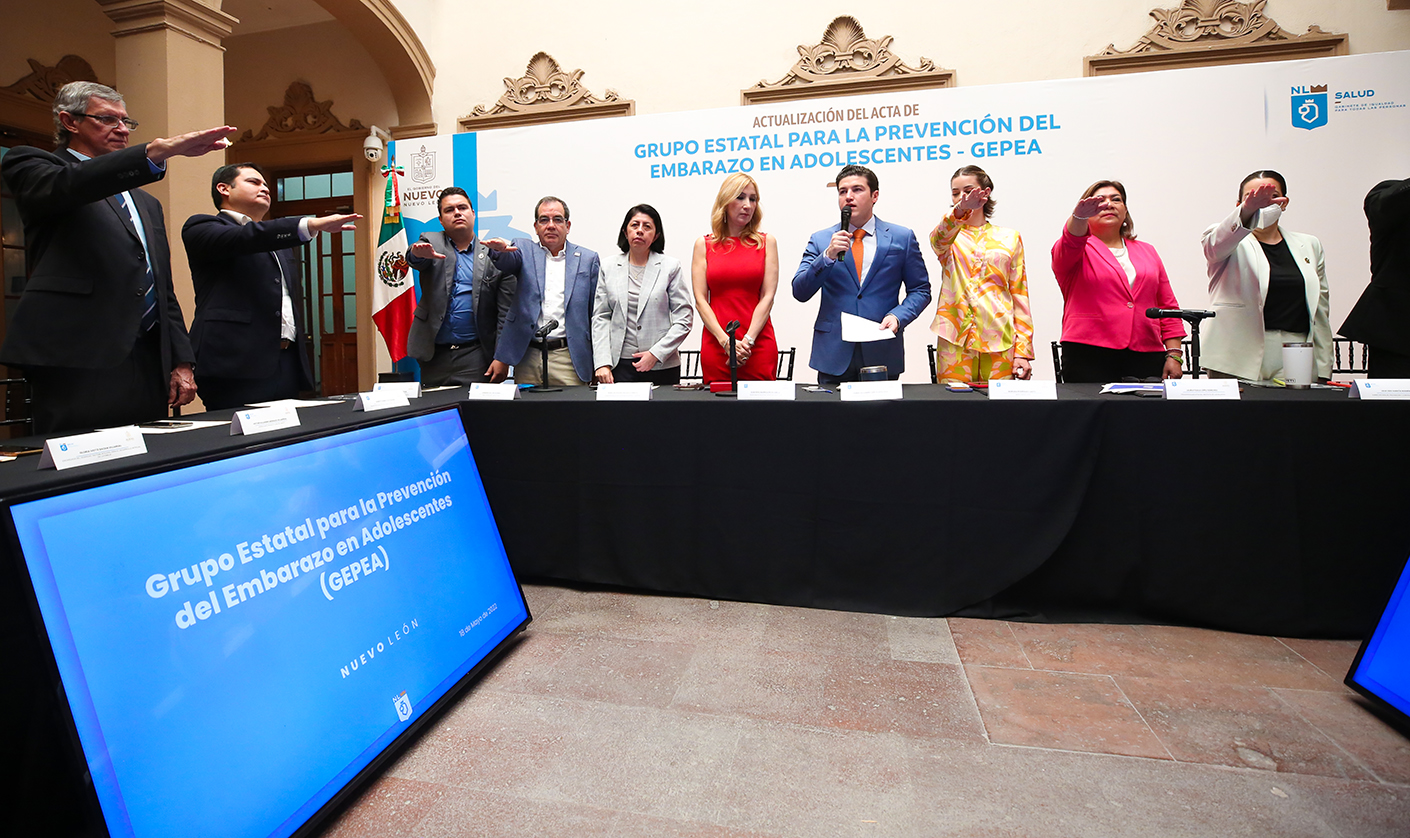 Encabezados por el Gobernador Samuel García Sepúlveda; Mariana Rodríguez Cantú de AMAR Nuevo León; y de la Secretaria de Salud, Alma Rosa Marroquín Escamilla, se llevaron a cabo los trabajos del Grupo Estatal para la Prevención del Embarazo en Adolescentes (GEPEA), mediante los que se establecieron los retos y metas de la actual administración.