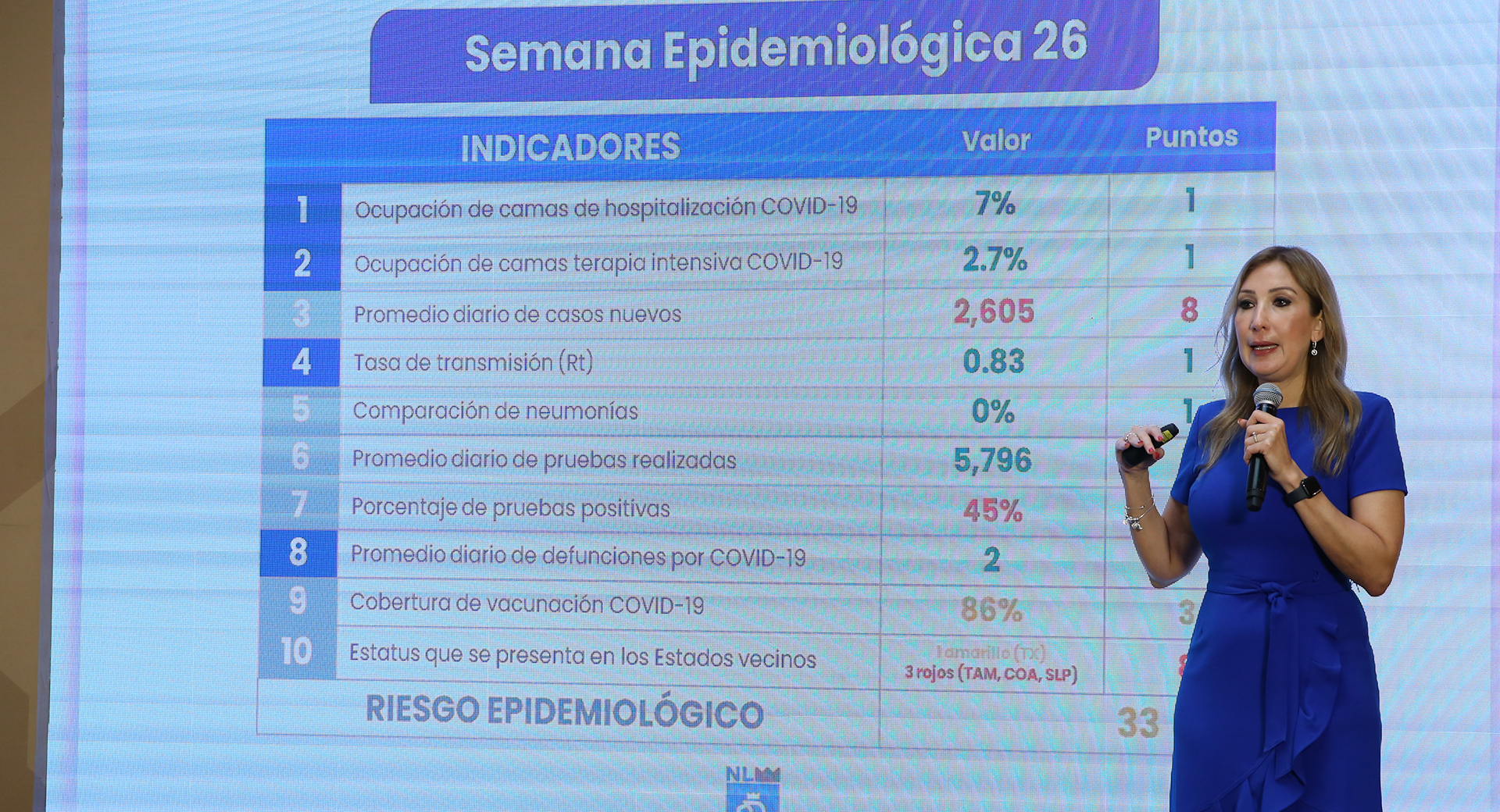 Marroquín Escamilla dio a conocer que tras el análisis semanal, el Semáforo Epidemiológico pasa a color amarillo, con 6 indicadores en verde, 1 en amarillo y 3 en rojo.