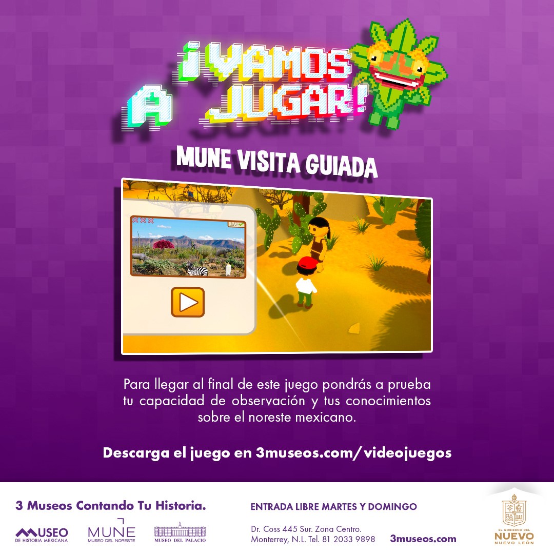 Para las escuelas que realizan recorridos por el Museo del Noreste, MUNE, se desarrolló el juego que enriquecerá esa experiencia, Mune’s Visita Guiada, está integrado por una serie de minijuegos que ayudan a reforzar el aprendizaje de una lección educativa previamente impartida o leída, relacionando imágenes y objetos que corresponden o no al bioma, entre otras acciones.