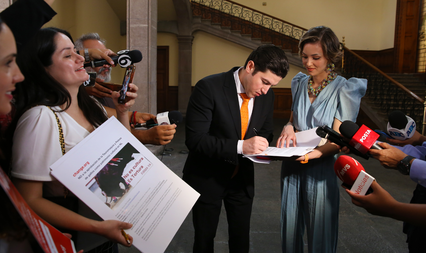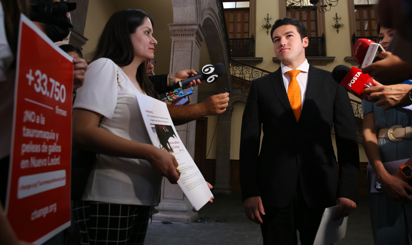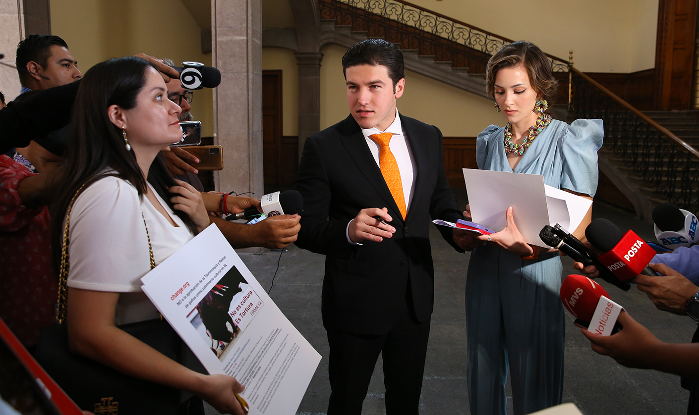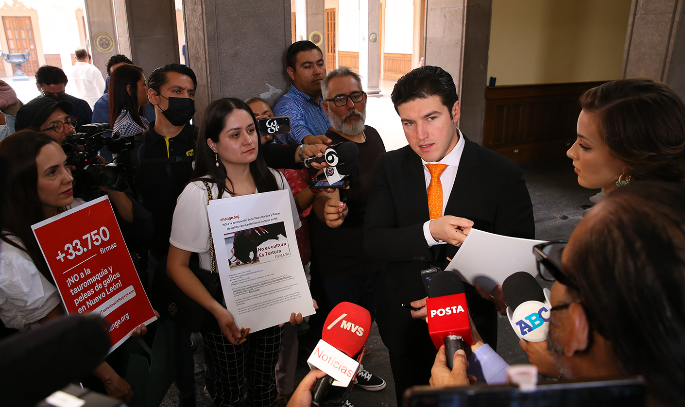 El Gobernador Samuel Alejandro García Sepúlveda, vetó la reforma a la Ley de Patrimonio de Nuevo León que declara a la tauromaquia y a las peleas de gallos como patrimonio cultural.