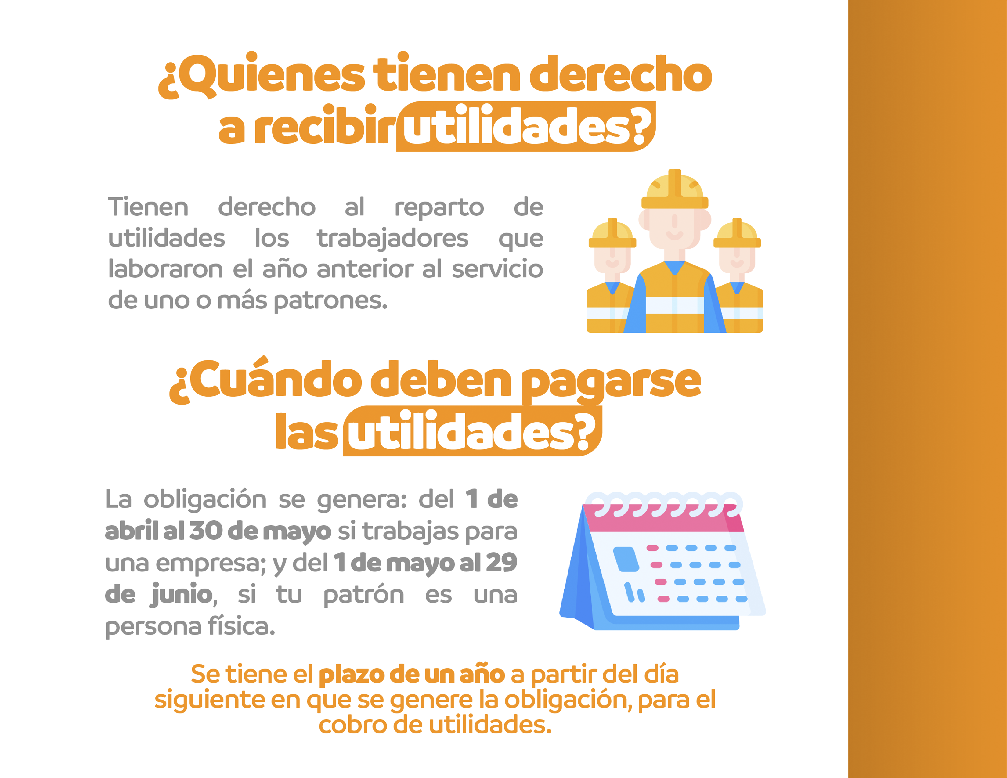 - Si trabajas para una persona física, debes recibir tus utilidades del 1 de mayo al 29 de junio.