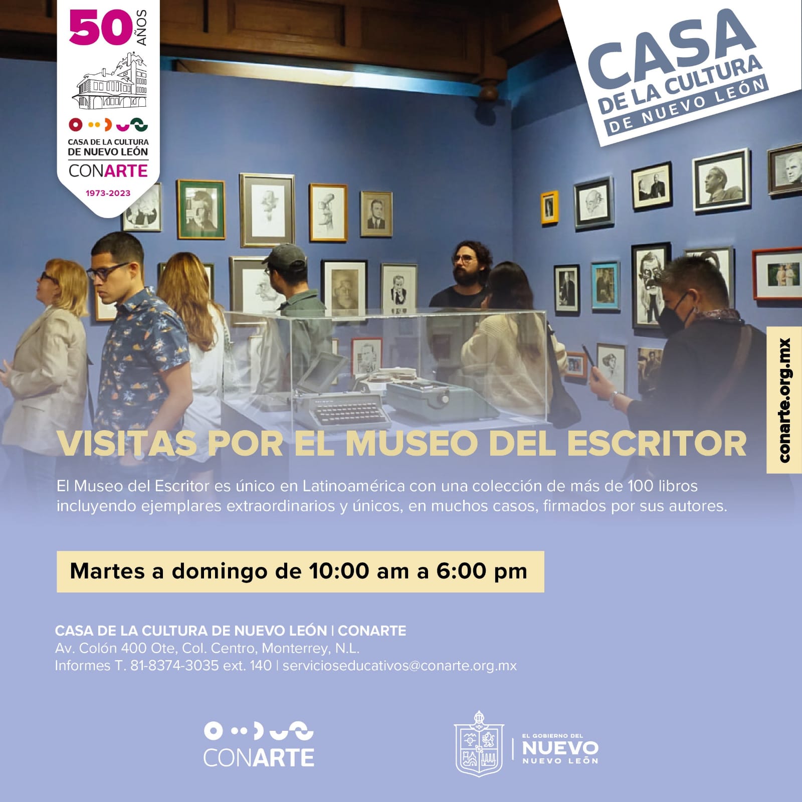 CONARTE invita a celebrar el Día Mundial del Libro, en la Casa de la Cultura de Nuevo León I CONARTE con la muestra: “Museo del Escritor”, conoce las grandes obras literarias del mundo y el quehacer de toda clase de narradores, poetas, dramaturgos, ensayistas, periodistas y cronistas, que reúne la exposición que alberga la Casa de la Cultura I CONARTE, la cual podrás visitar de manera especial este domingo, en el marco de la celebración del Día Internacional del Libro 2023. También podrás participar en el intercambio de libros, talleres y lectura de cuentos a través de los cuales vivirás la magia de lectura y las artes.