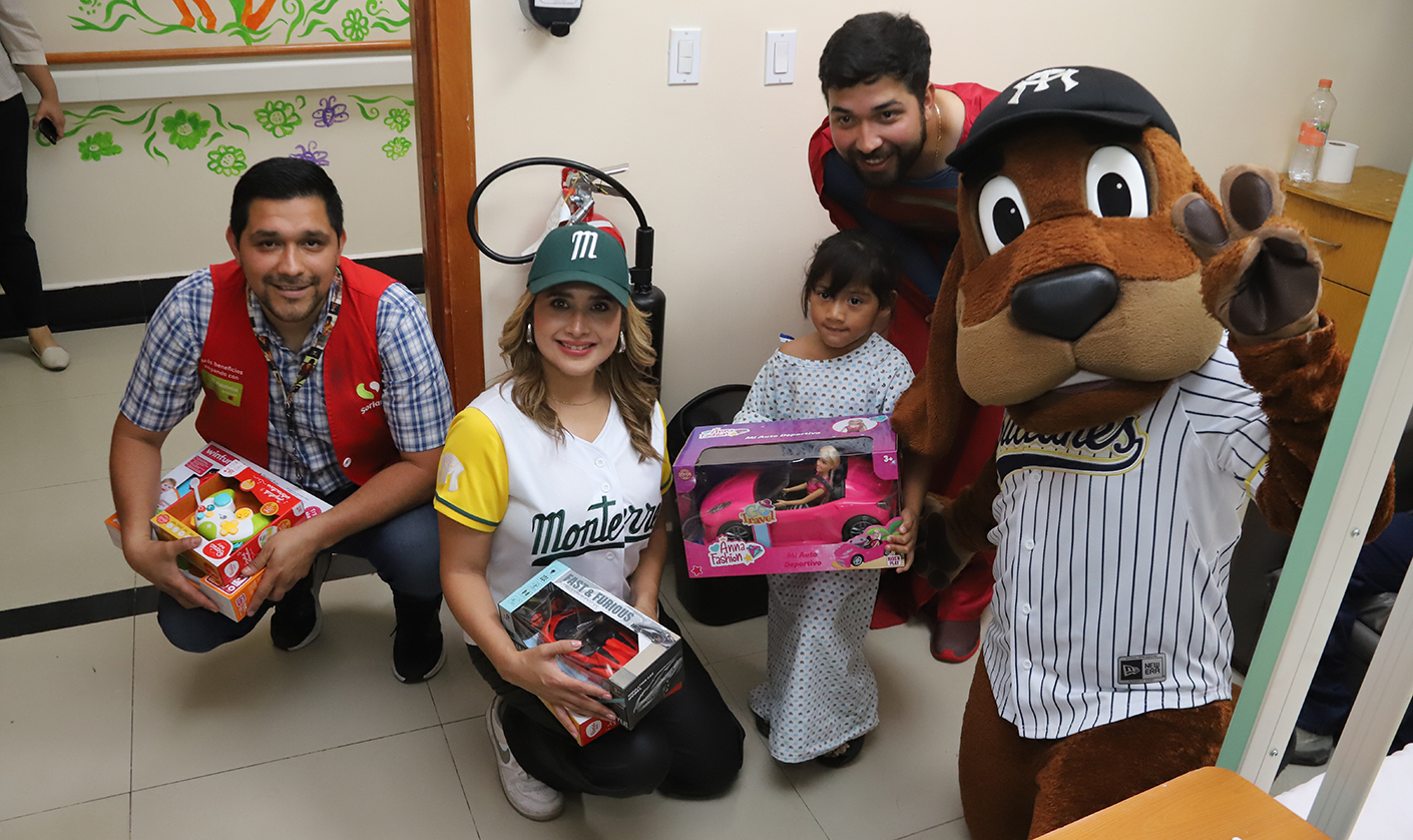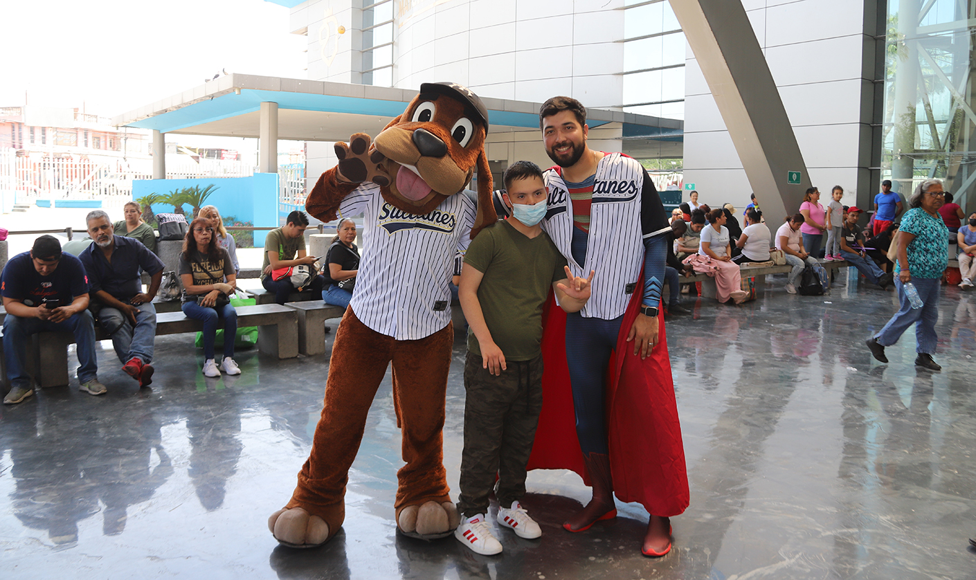 Monterrey, Nuevo León.- Las niñas y niños del Hospital Regional Materno Infantil vivieron un momento de alegría y diversión al recibir la visita del Perro Sultán y el beisbolista Roberto Valenzuela.